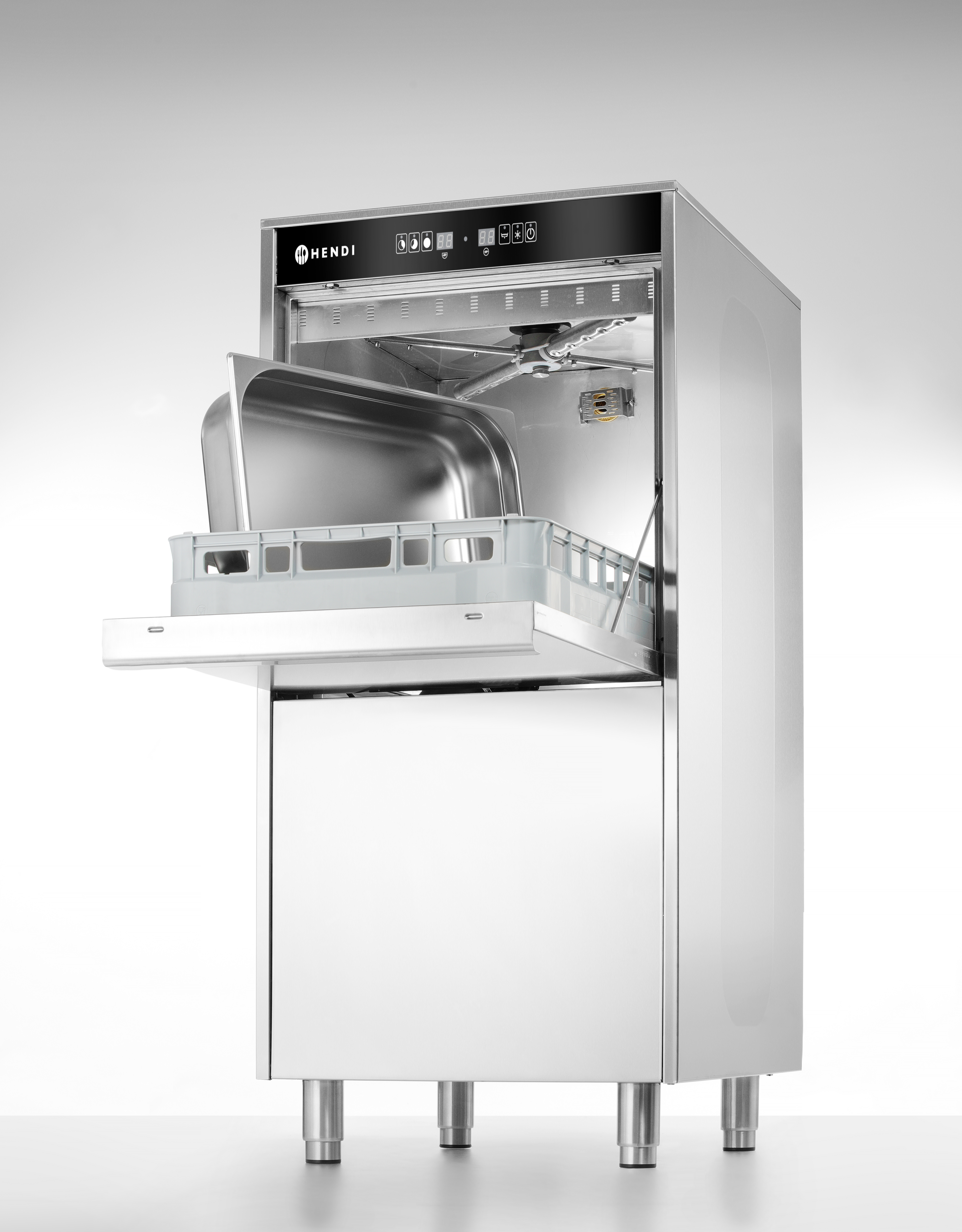 Gespecialiseerde vaatwasser, perfect voor het reinigen van pannen, GN-bakken, oventrays, flessen, dienbladen of bestek.