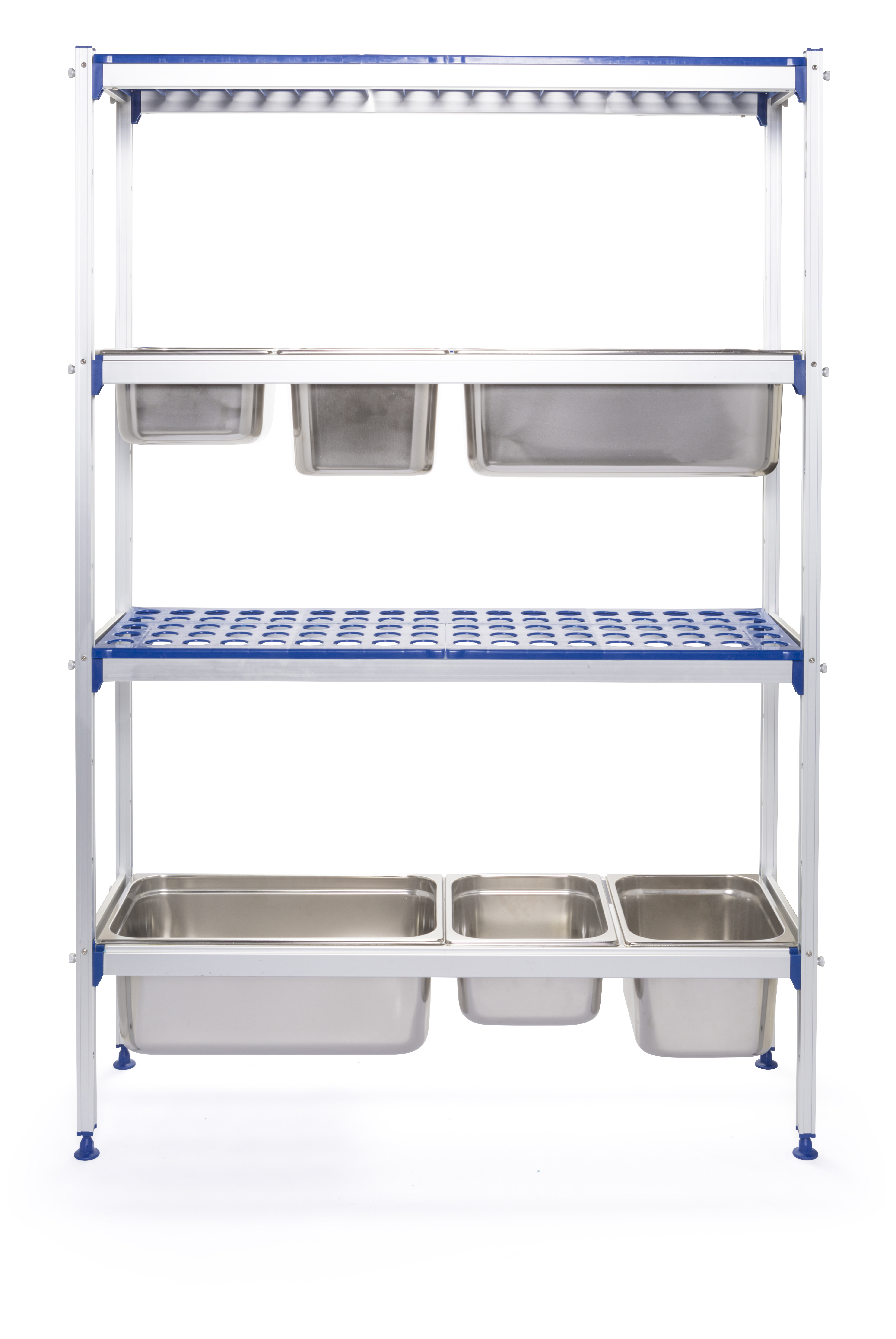 GN 1/1 containers passen direct tussen de aluminium dragers.