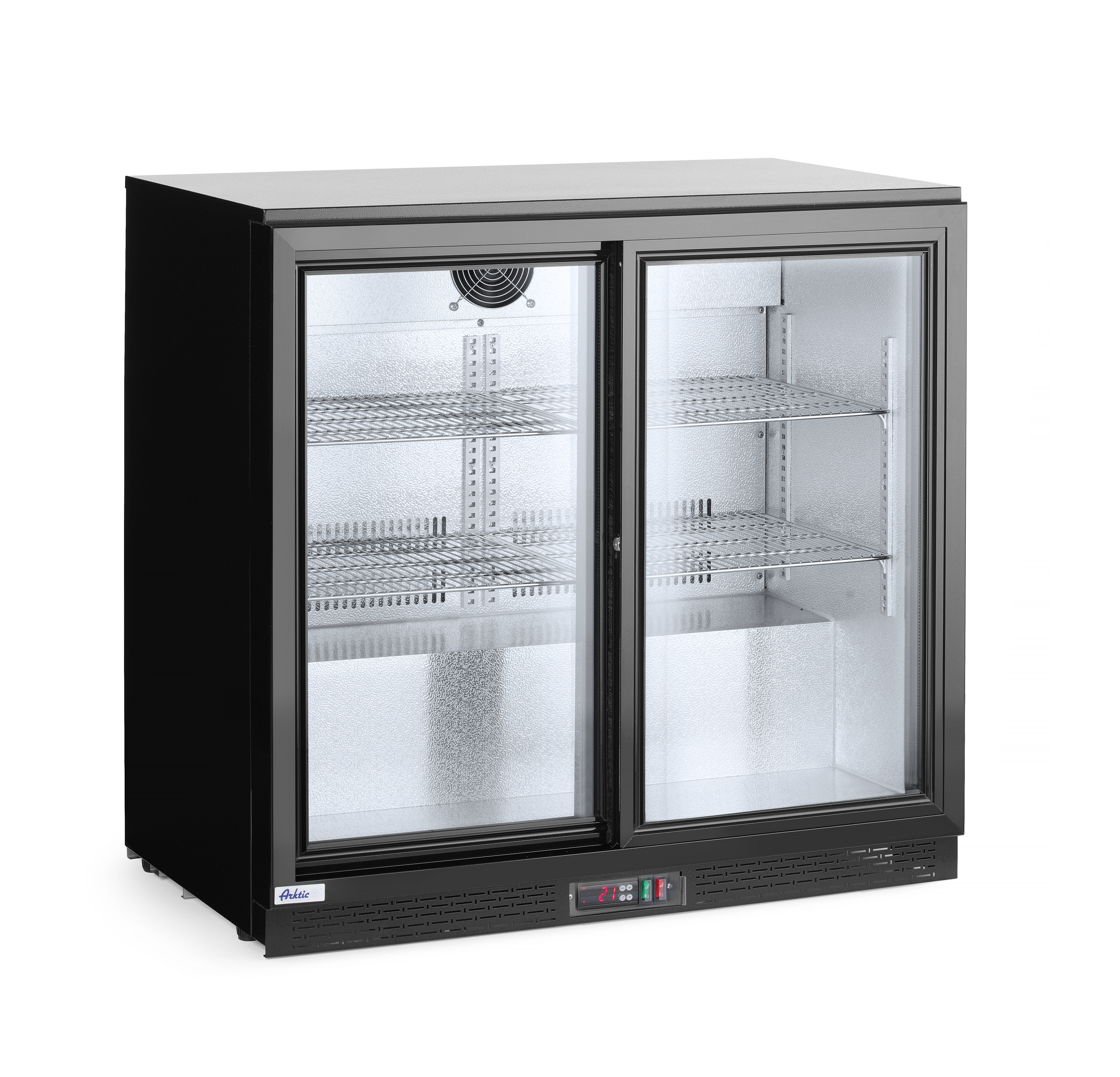 Ruime barkoelkast met deuren van gehard glas. Uitgerust met LED-verlichting om producten te presenteren.