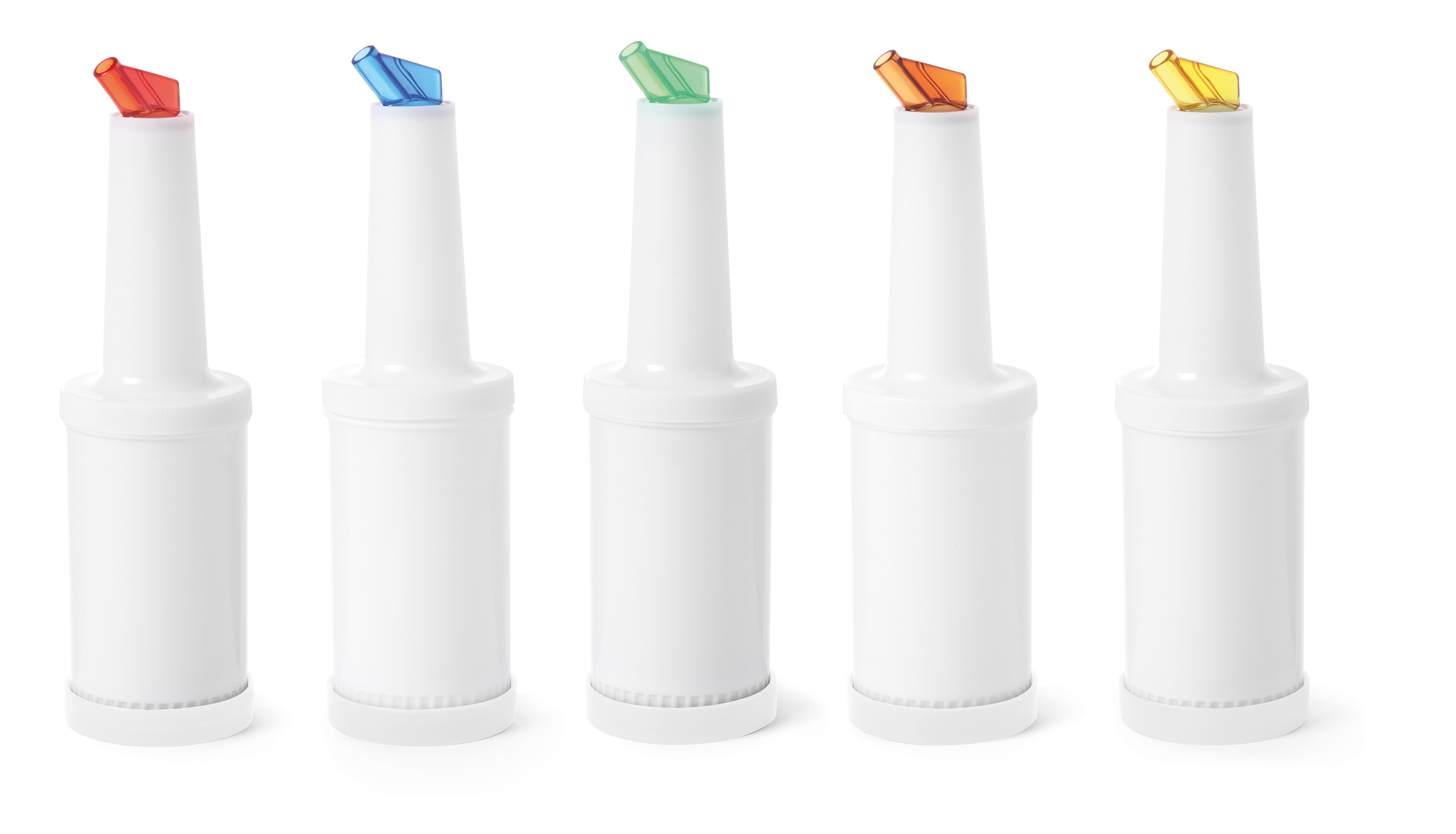 Houd je sappen en pre-mixen binnen handbereik en schenk ze gemakkelijk in. Deze flessen zijn volledig uit elkaar te halen waardoor ze gemakkelijk schoon te maken zijn.