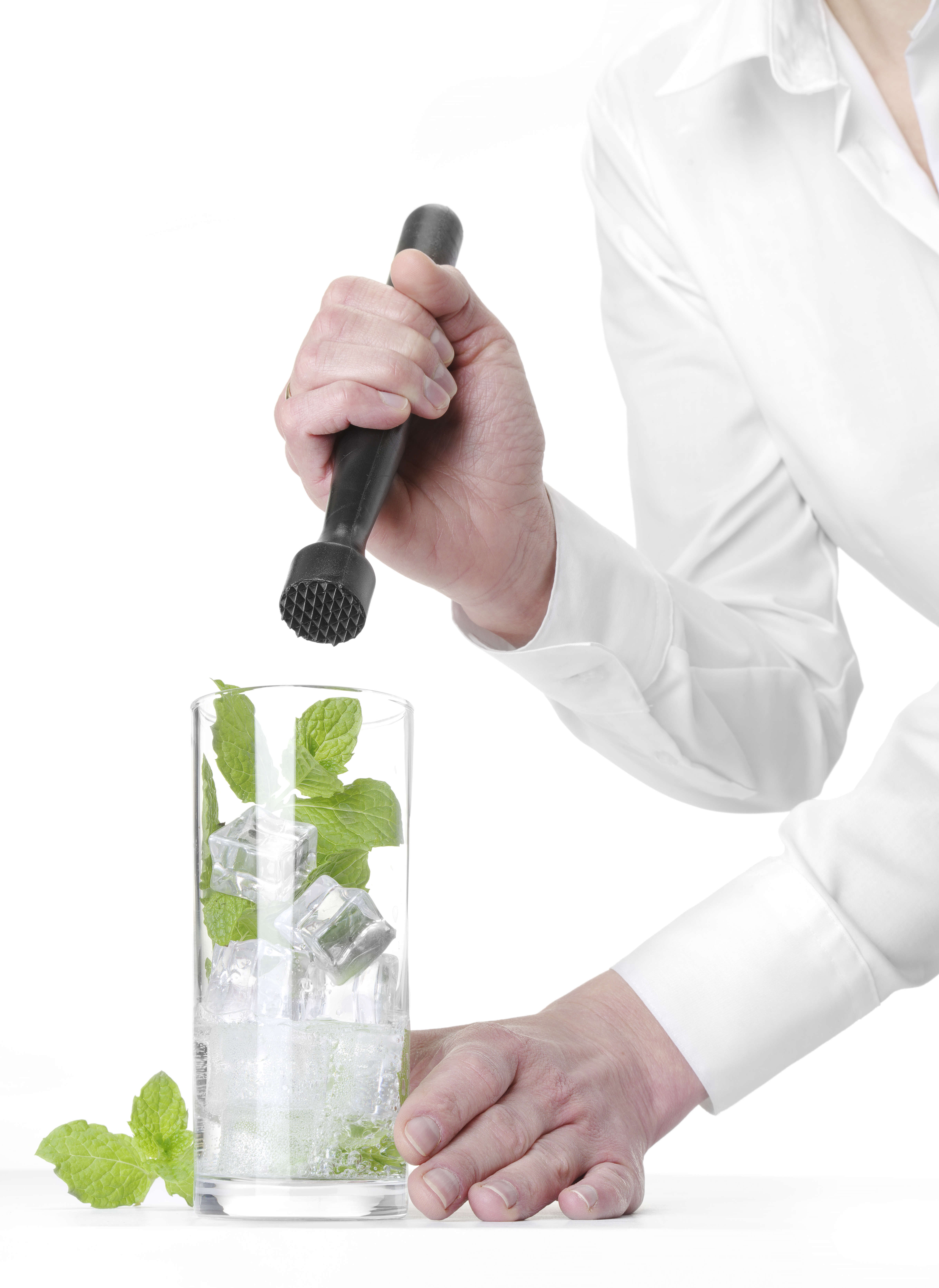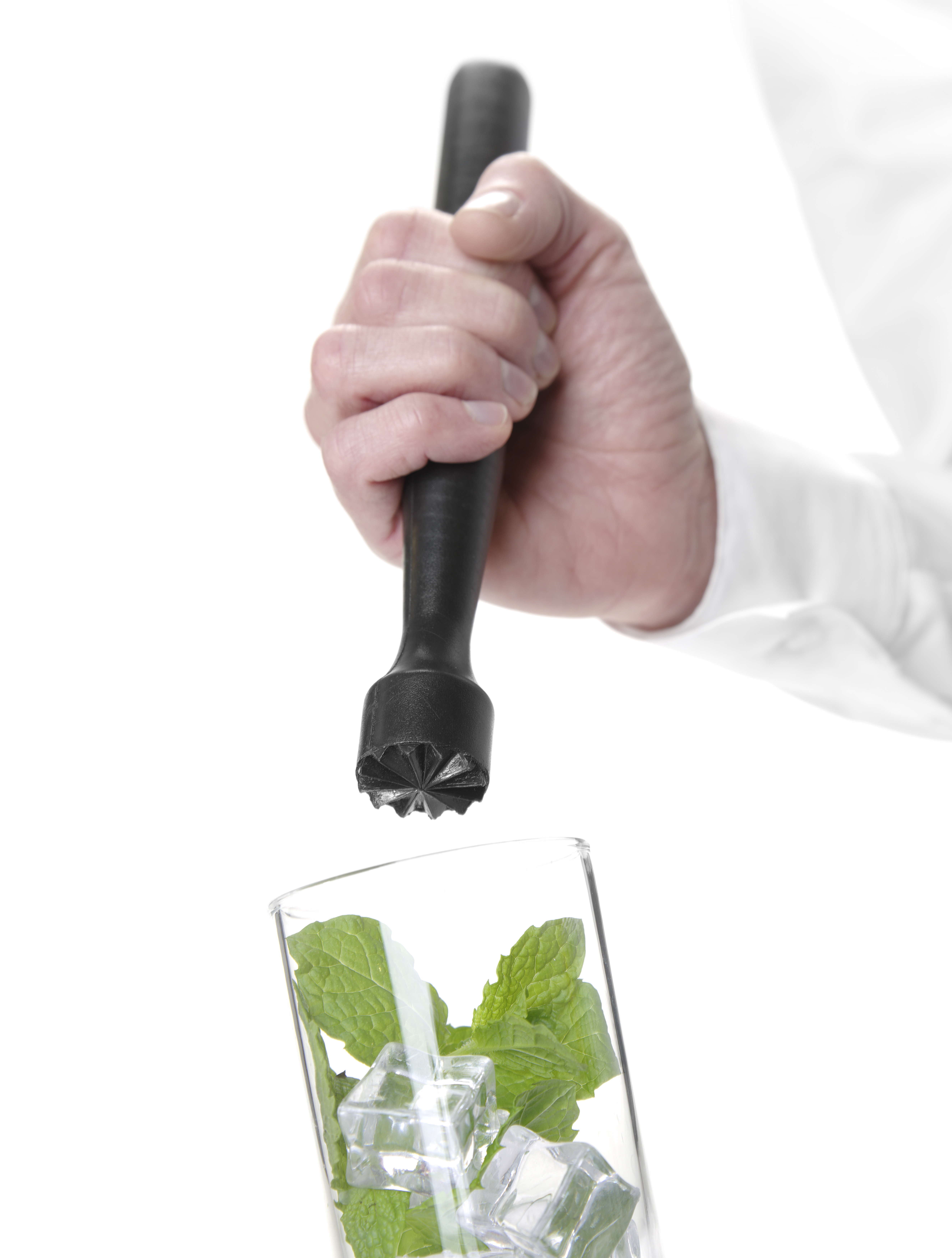 Voor het vermalen en fijnmaken van drankingrediënten frambozen, limoenen, munt etc.