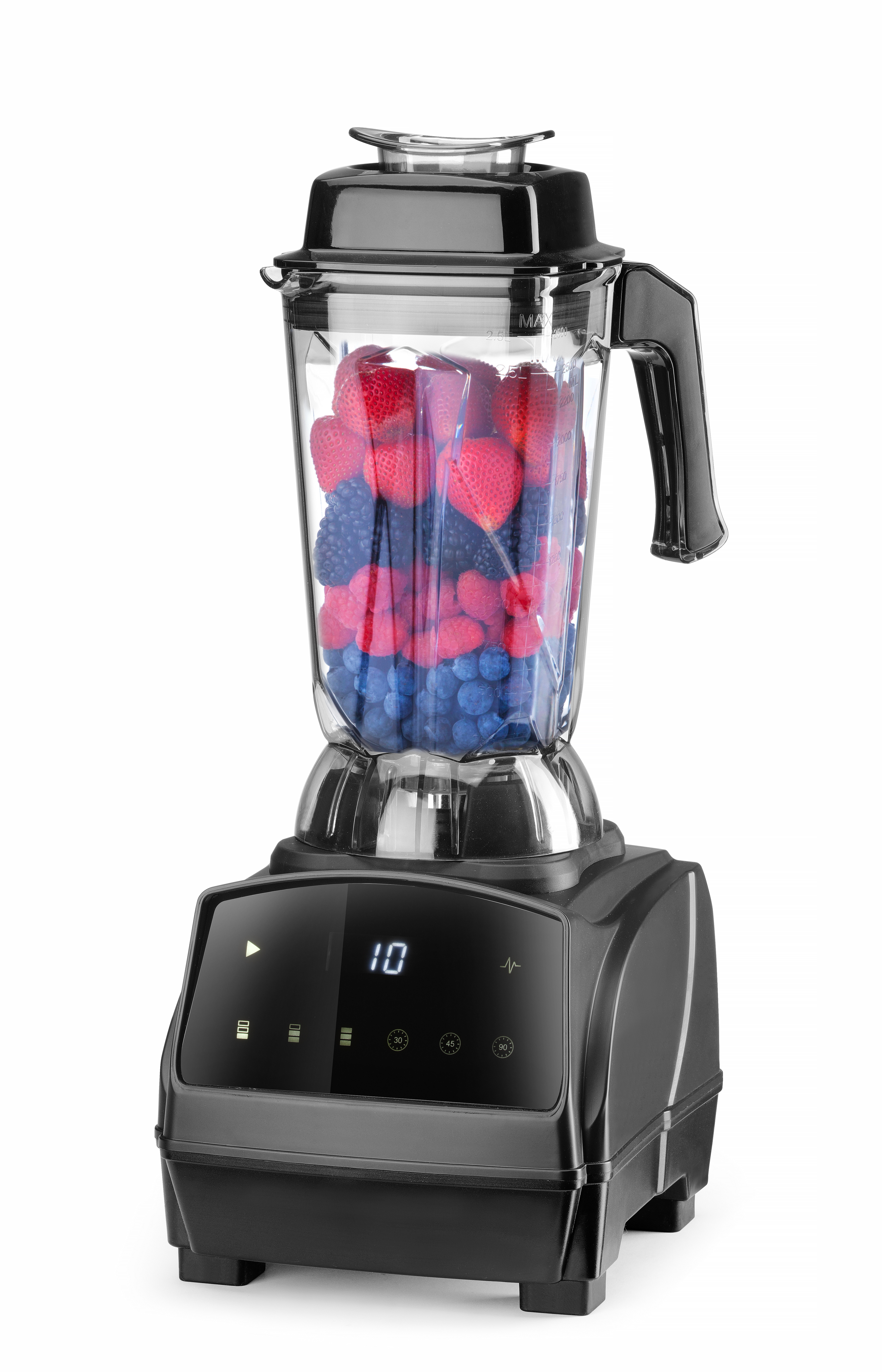 De HENDI Digital bar blender BPA-vrij is een krachtige blender, professioneel uitgevoerde blender met een duurzame 2,5L Tritan mengkan, roestvast stalen mesjes met titaniumcoating en een digitaal touchscreen met 3 snelheden en tijdinstellingen. De veiligheid wordt gewaarborgd door een vergrendelsysteem en bescherming tegen oververhitting, wat het een betrouwbare keuze maakt voor commercieel gebruik.