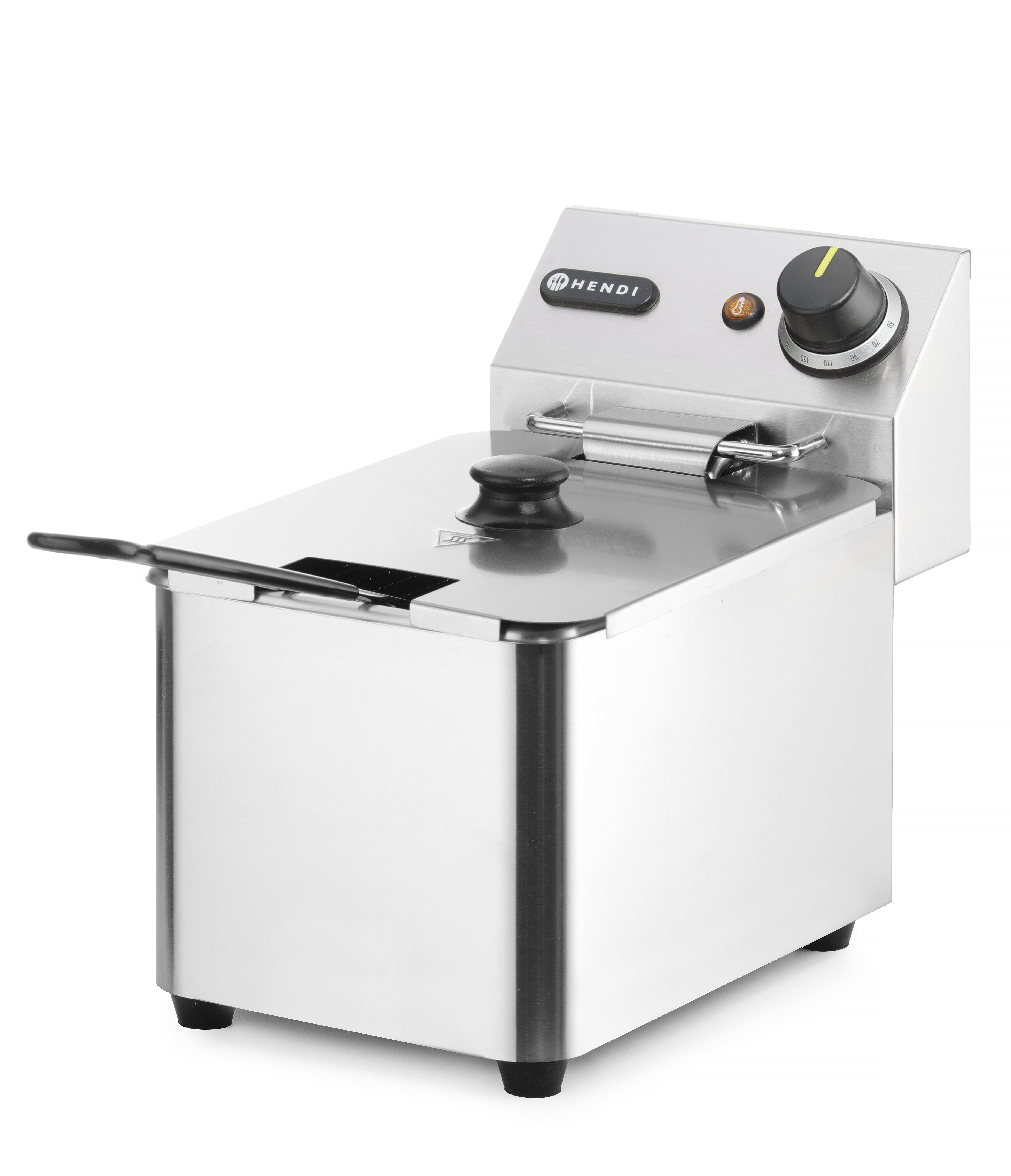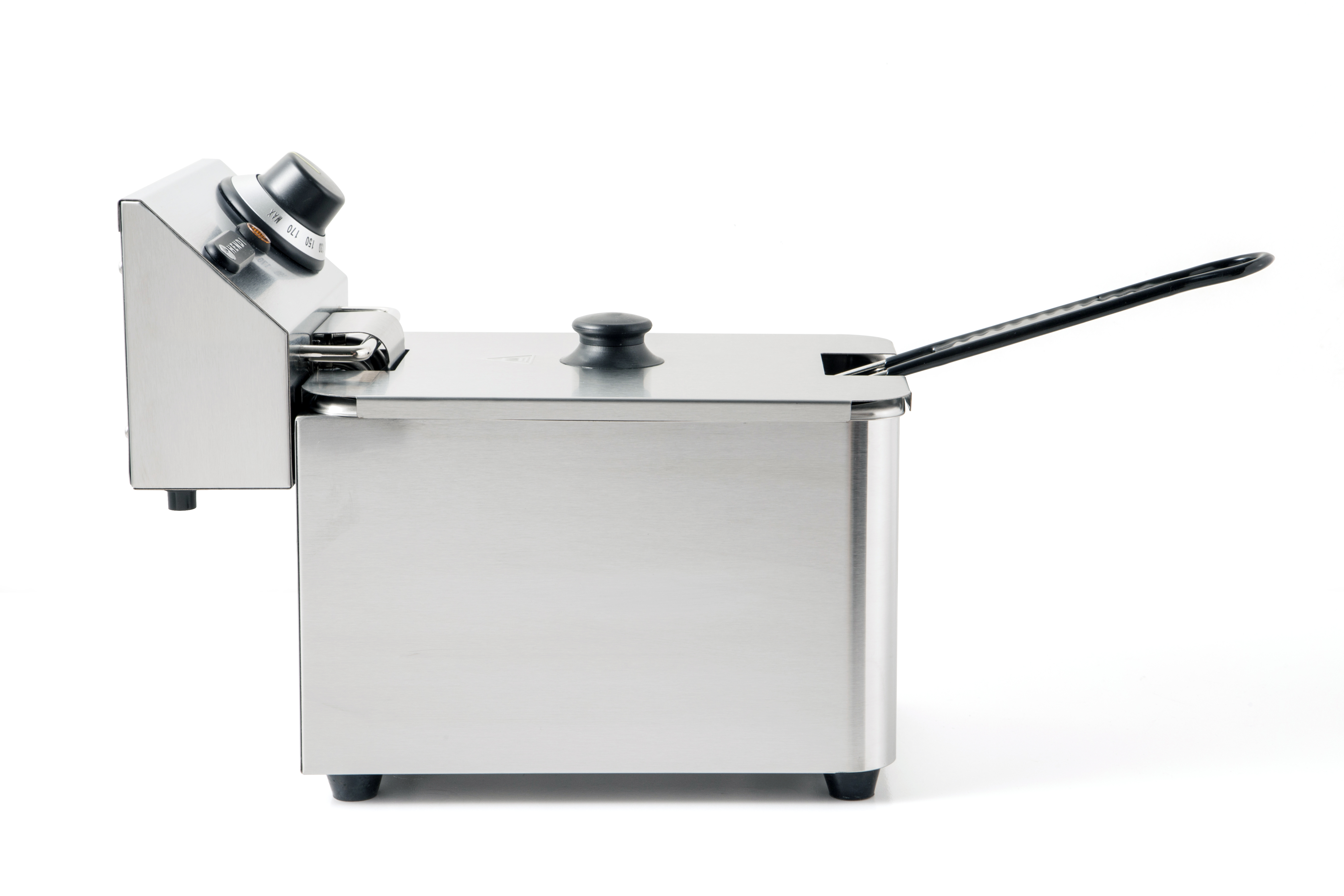 Een frituurmand met een extra lange handgreep maakt dit model tot een prettig apparaat voor intensief gebruik.