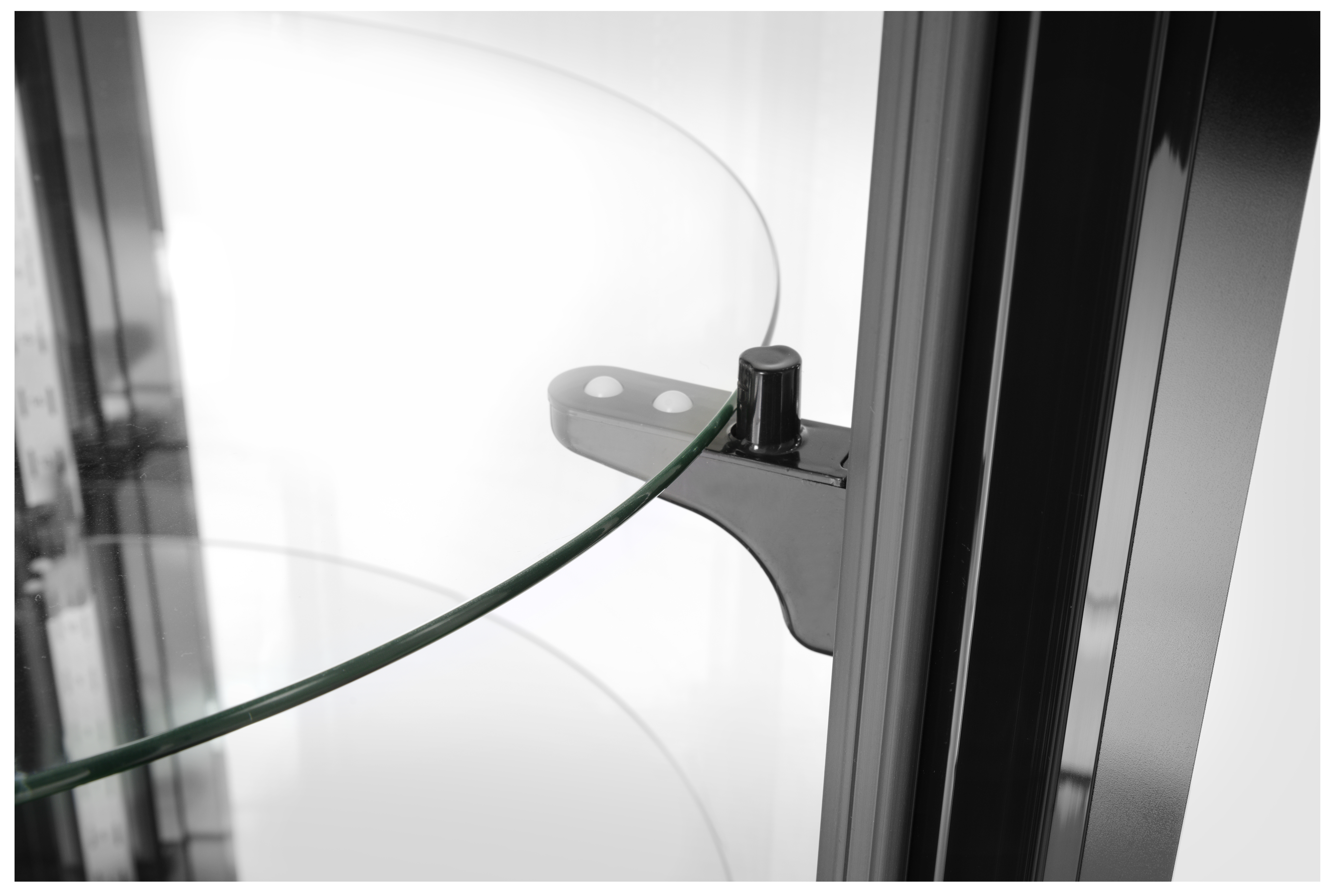 Stijlvolle ronde gebaksvitrine, voorzien van dubbelglas. Heldere LED-lampjes zorgen ervoor dat producten optimaal worden gepresenteerd.