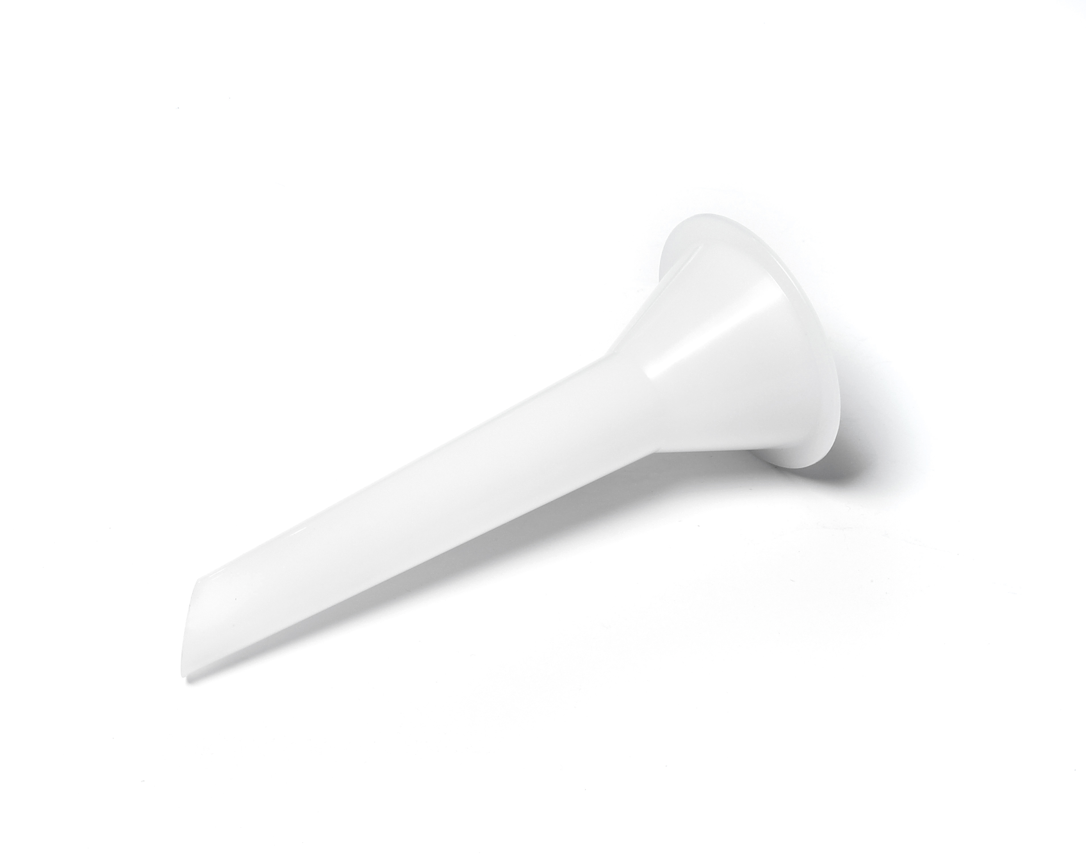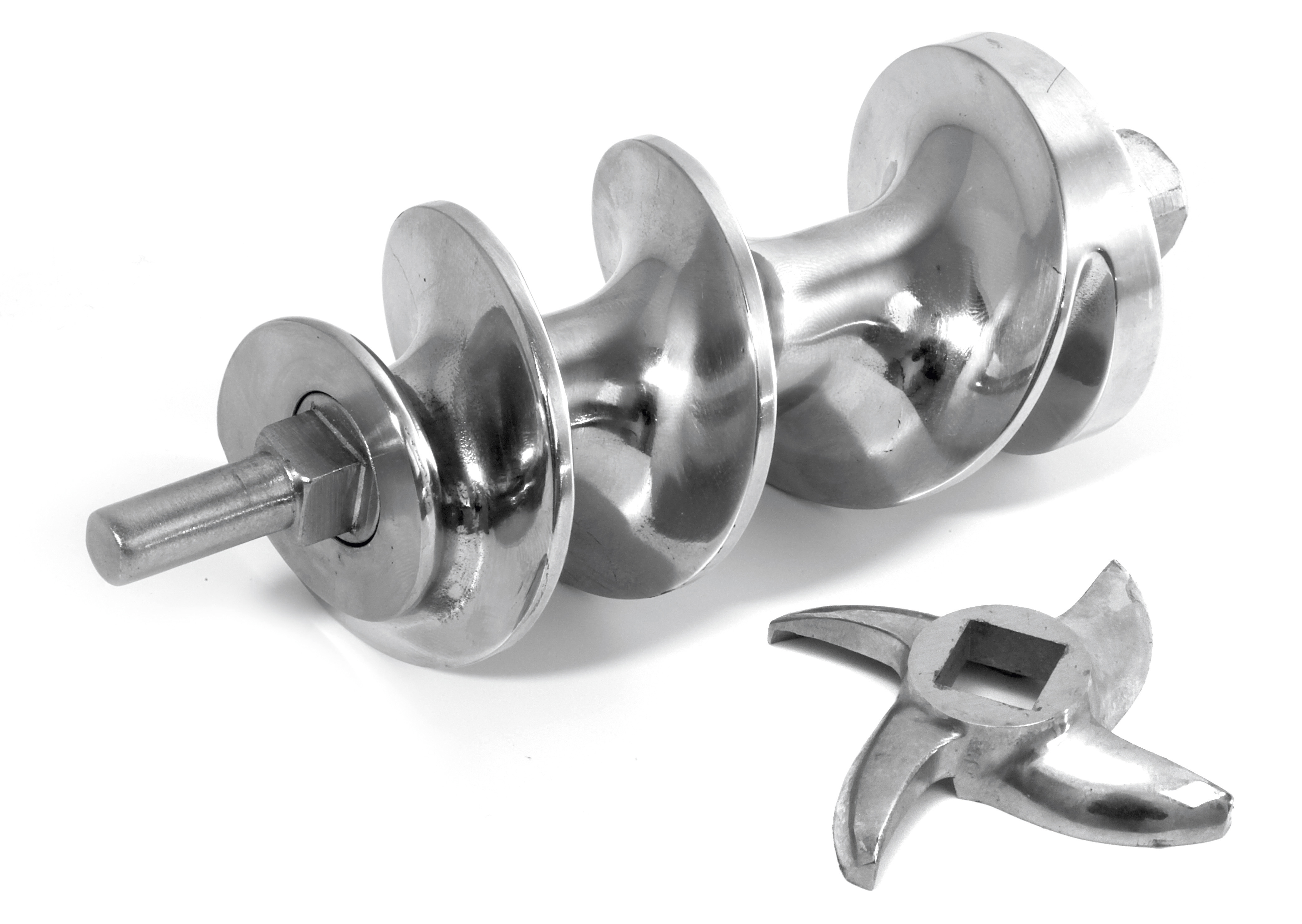 Mes en wormschroef van roestvast staal, trechter van gietijzer.