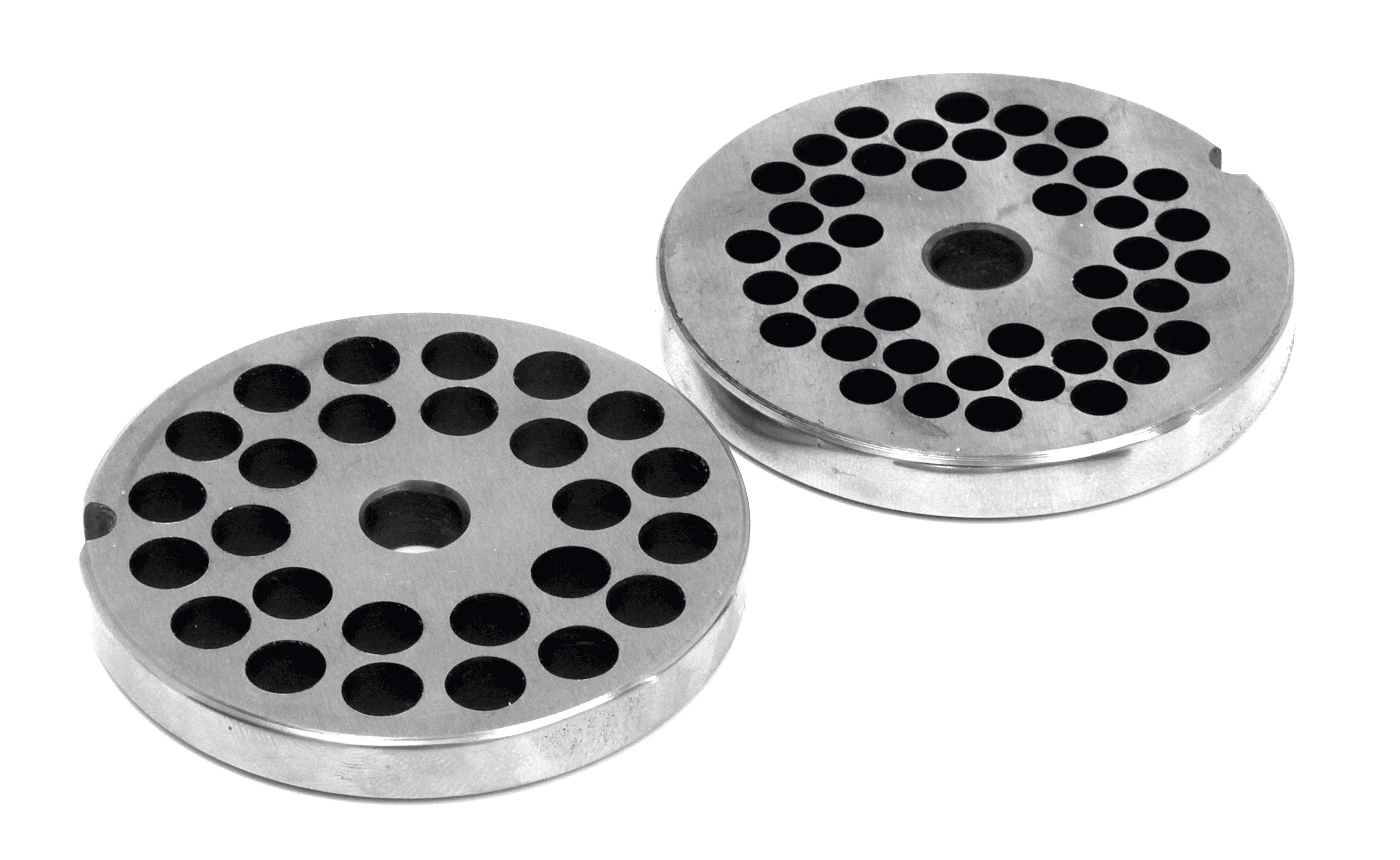 Inclusief stamper en twee ø70 mm geperforeerde platen met ø6 en 8 mm perforaties.