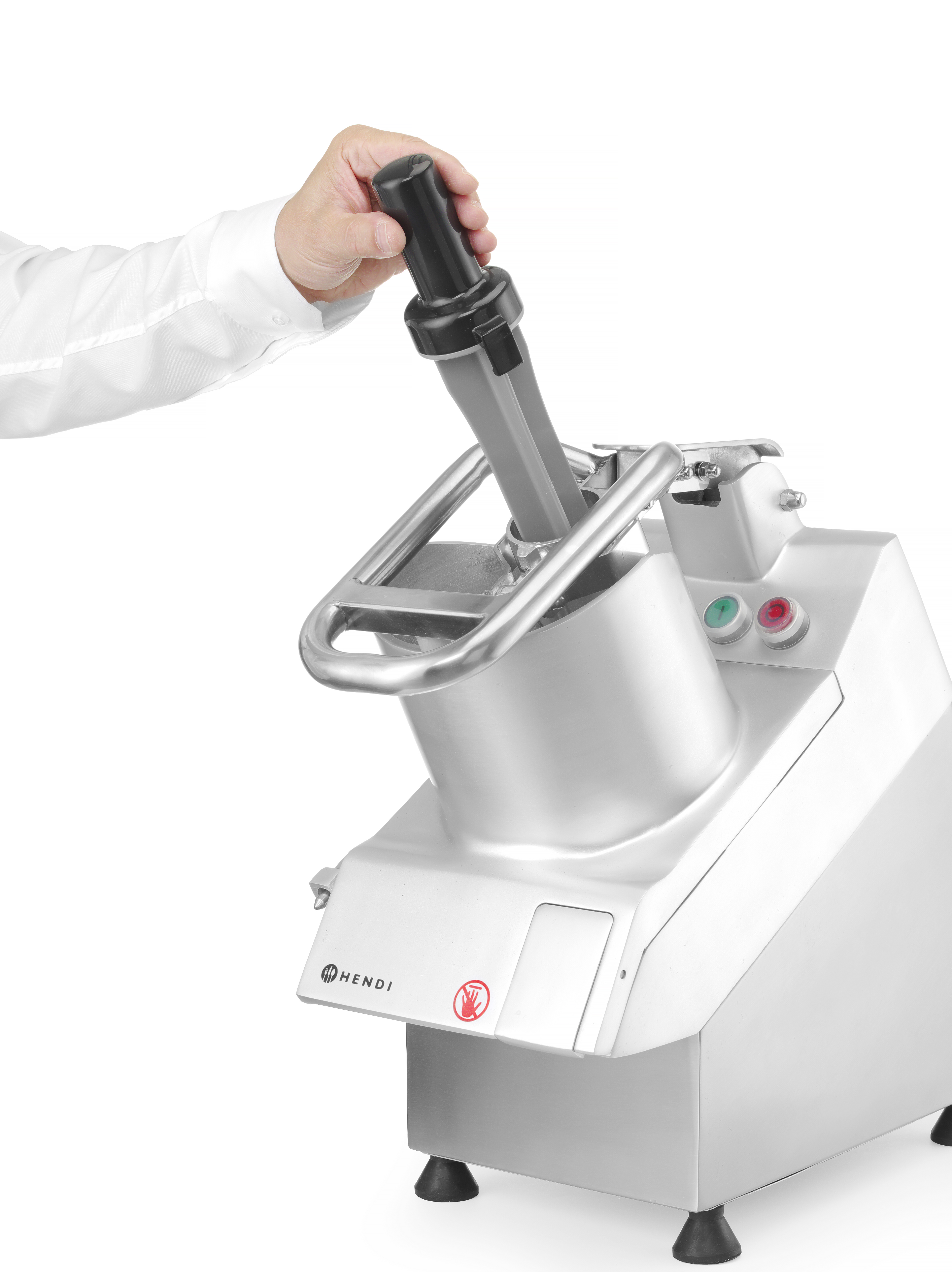 De groentesnijder start automatisch als de hendel aangeduwd wordt.