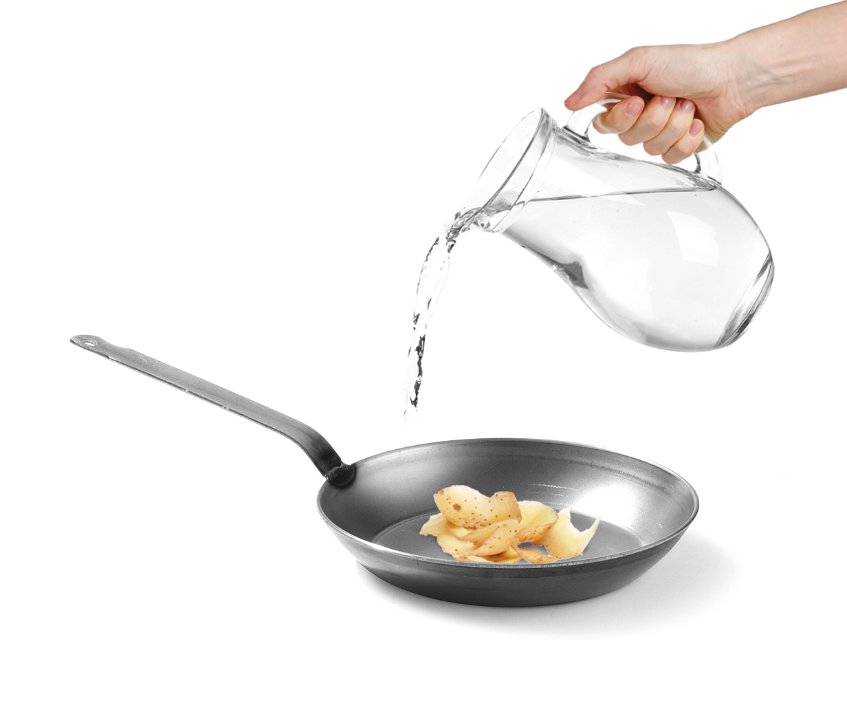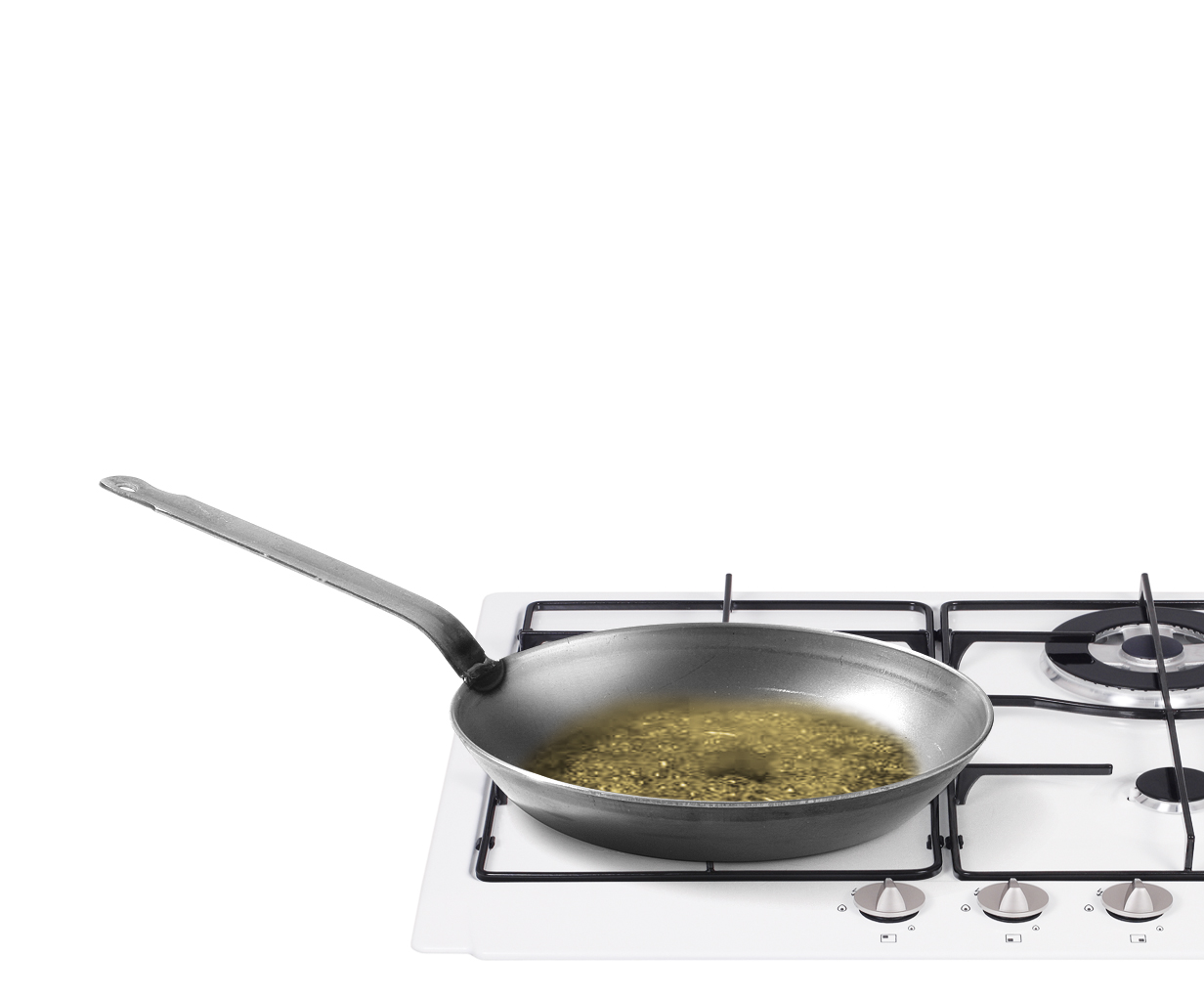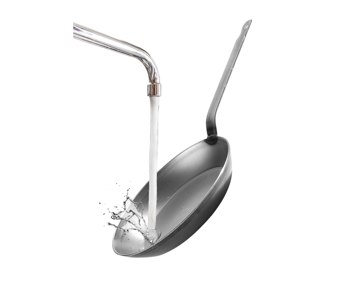 Traditionele pan van plaatstaal, de favoriet van vele professionele koks. Zeer duurzaam en, mits goed onderhouden, een bijzonder lange levensduur.
