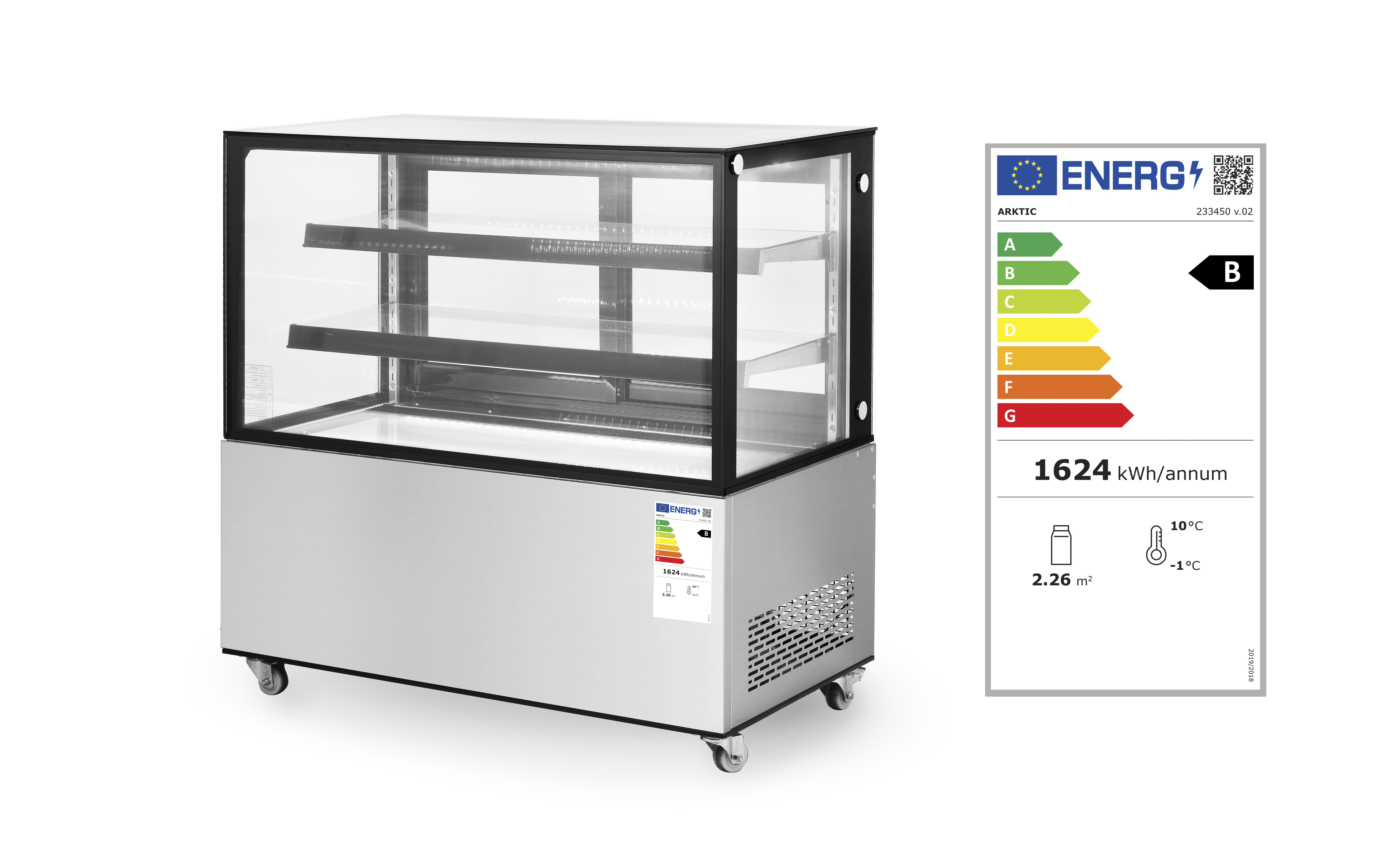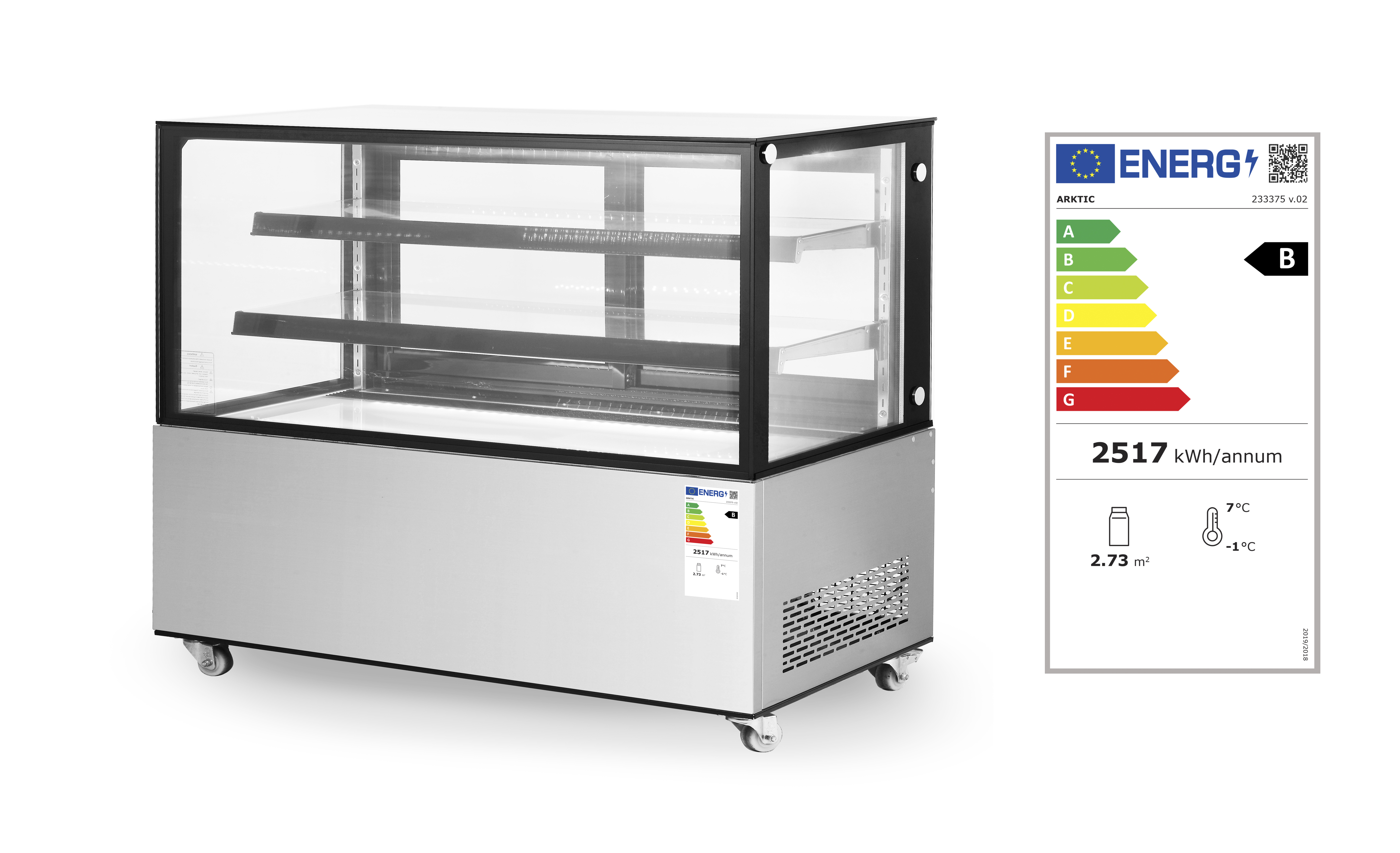 Klassieke koelvitrine, voorzien van dubbelglas. Heldere LED-lampjes zorgen ervoor dat producten optimaal worden gepresenteerd.