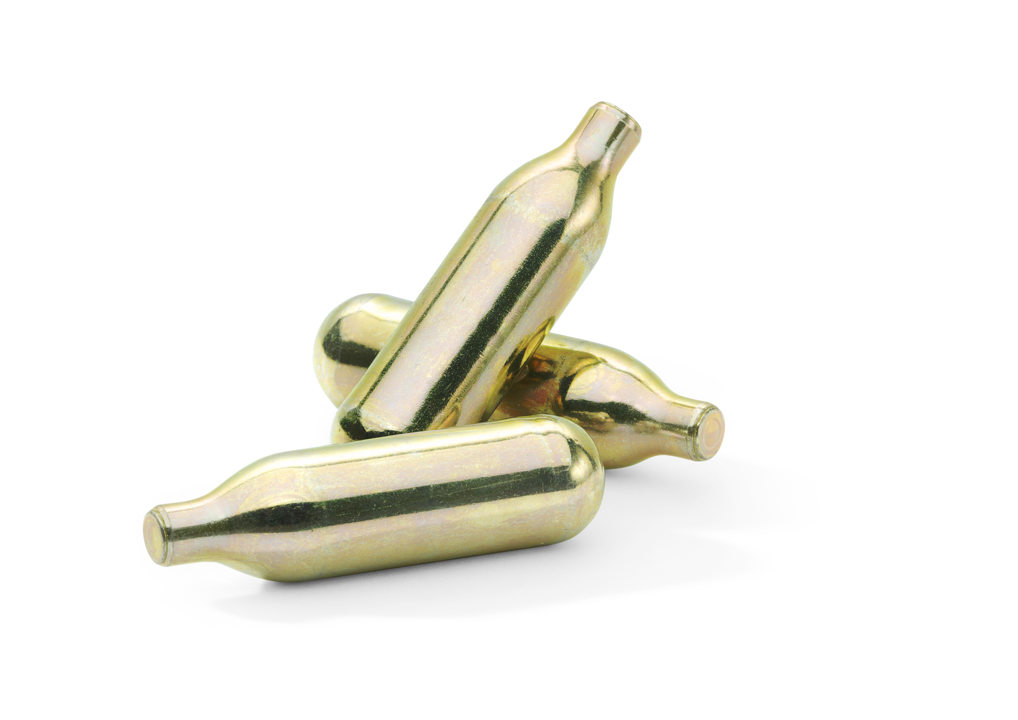 Bevat 7,8 gram CO₂, een enkele vulling van een 1L spuitwaterfles.