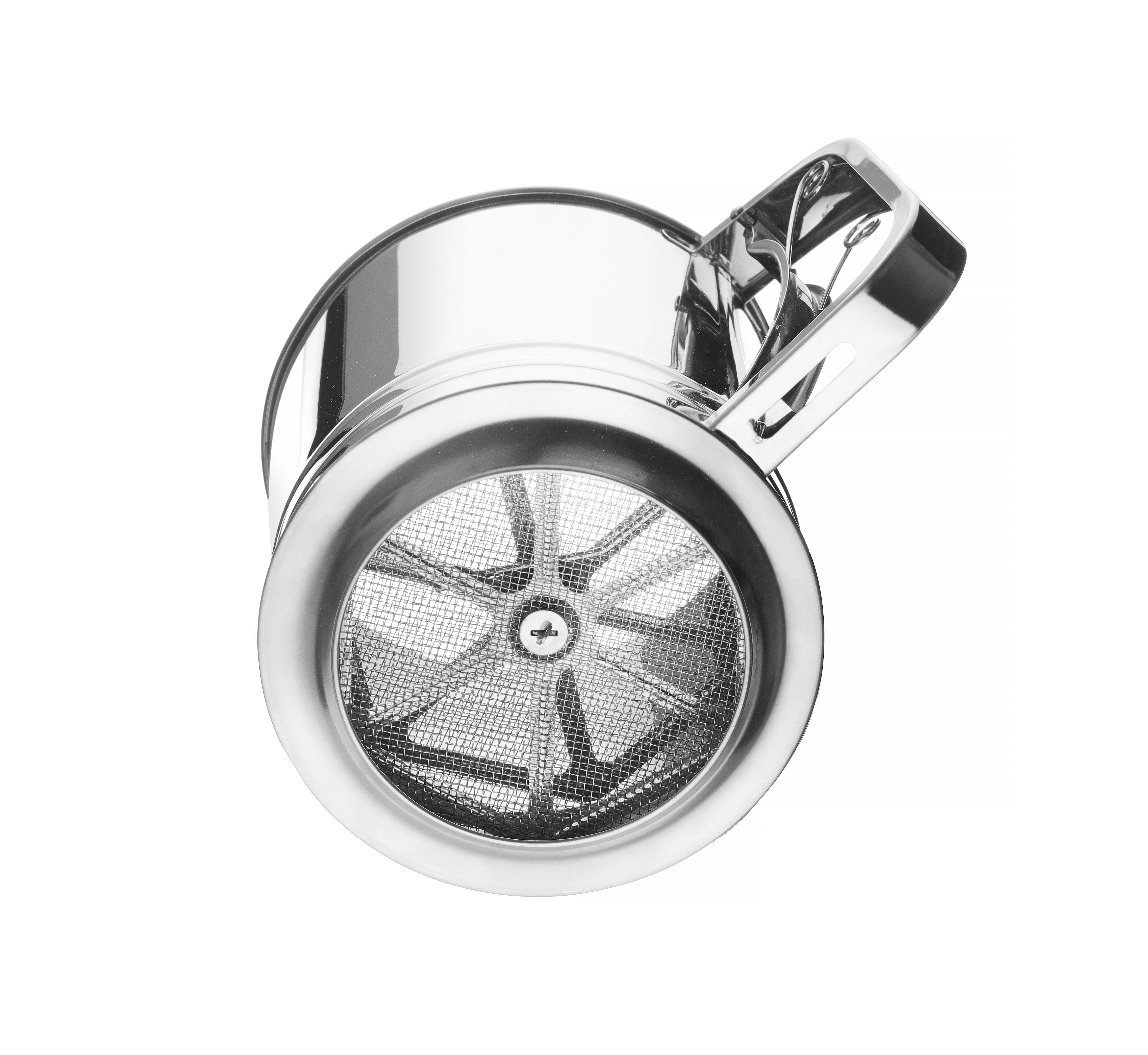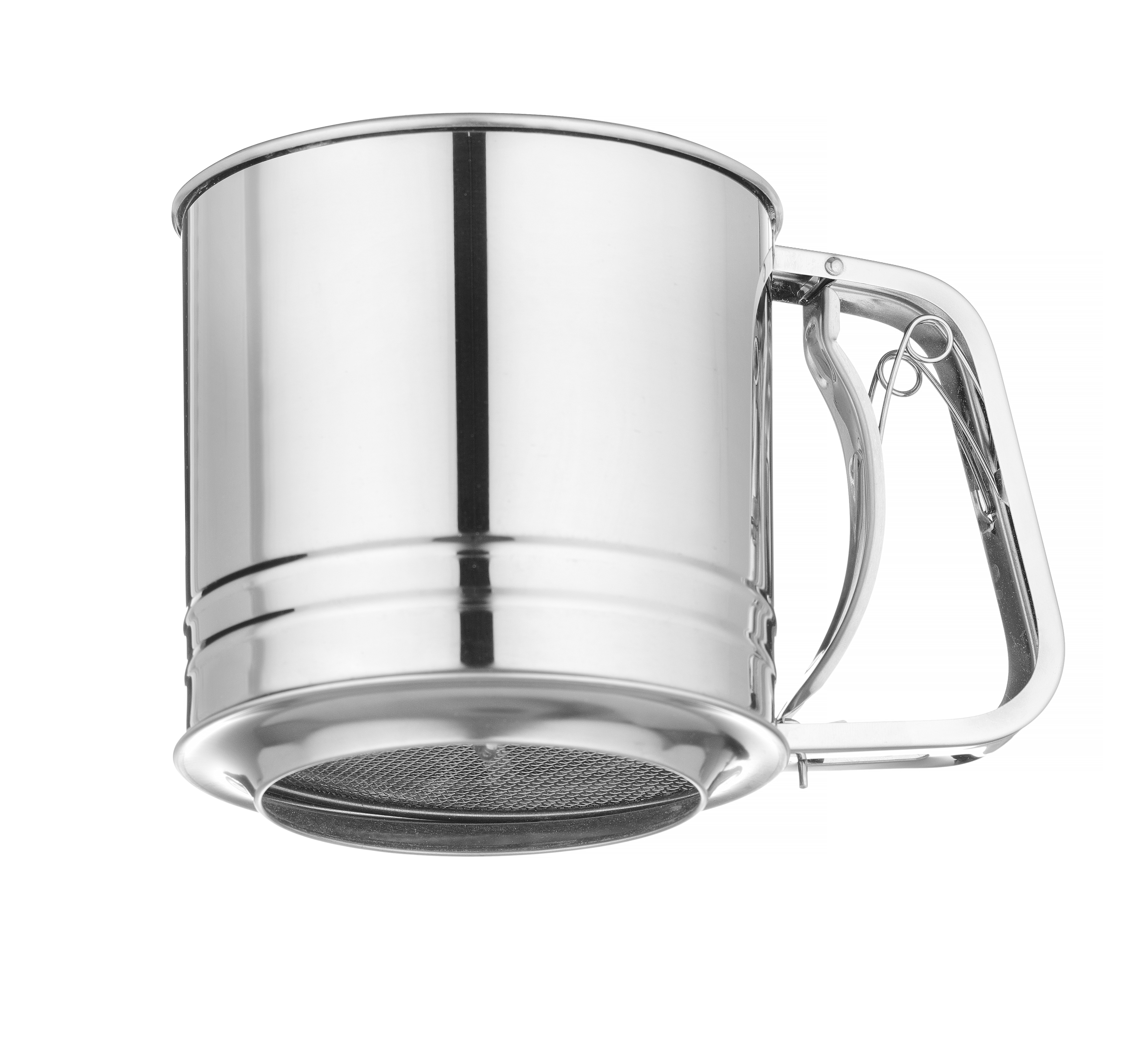Zeefmechanisme met een veer geïntegreerd in de handgreep
