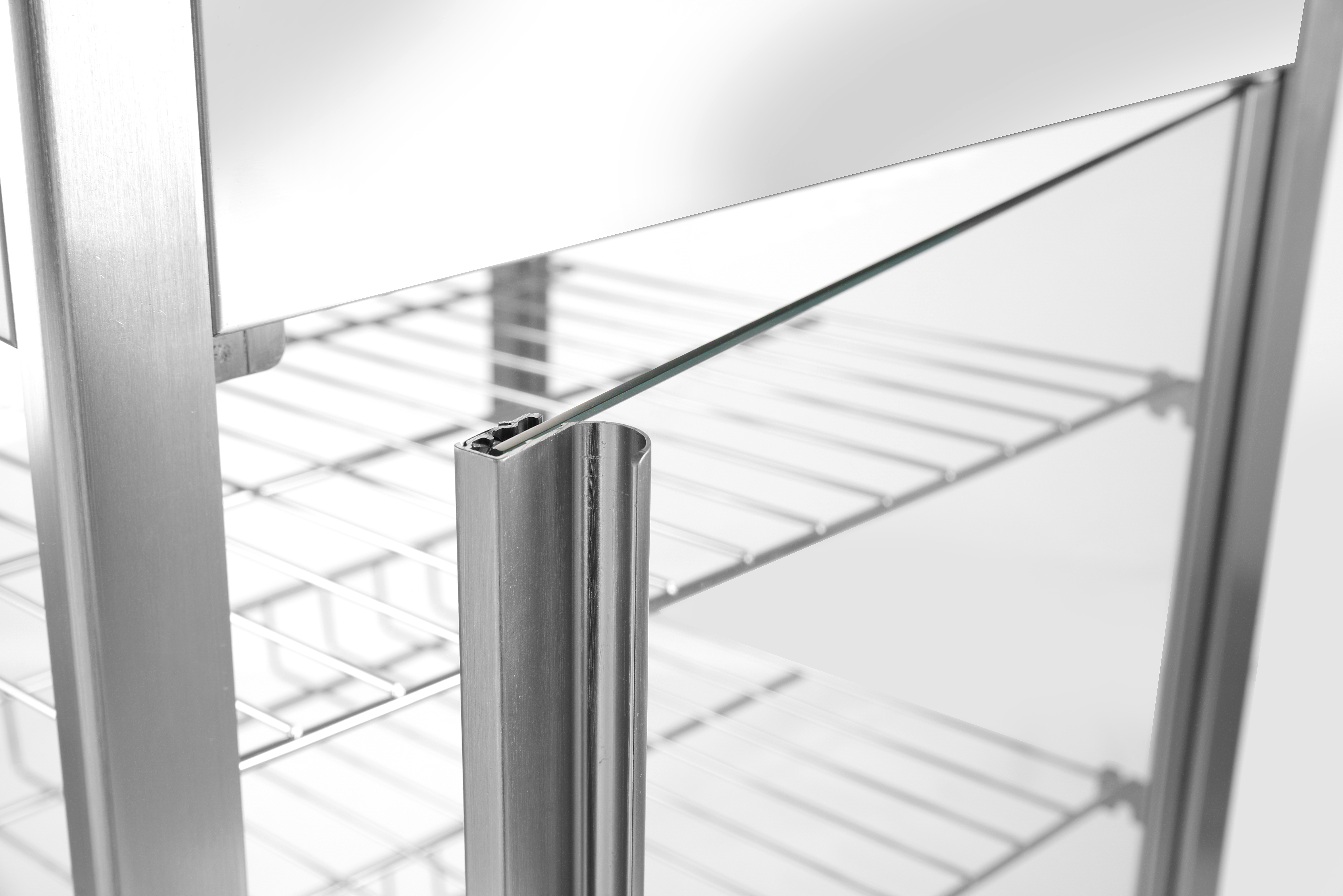 Inclusief 3 verchroomde schappen, in hoogte verstelbaar 400x335 mm.