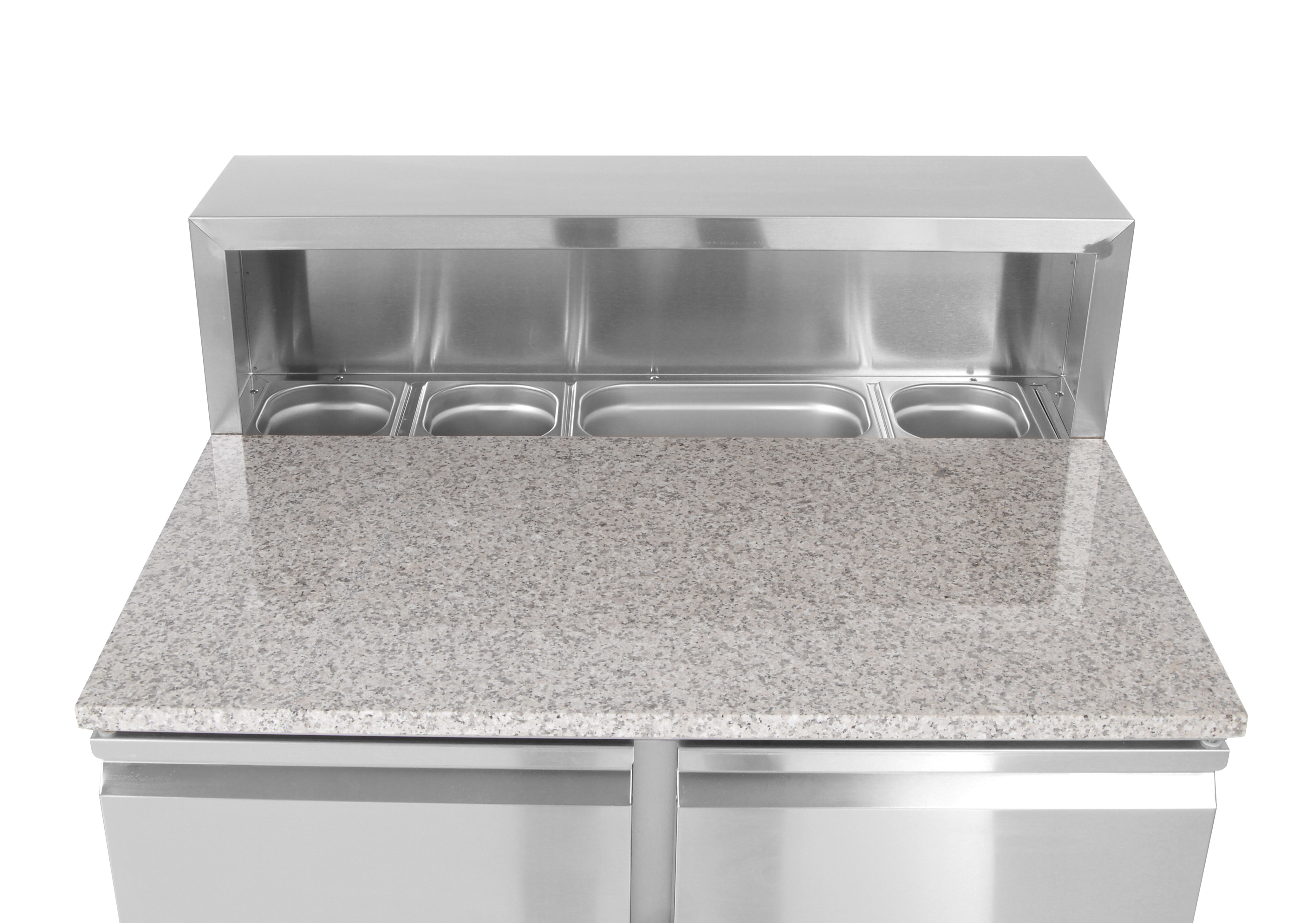 Behuizing van roestvast staal om de GN ruimte waarin 5x GN 1/6 bakken passen (max. hoogte 150 mm).