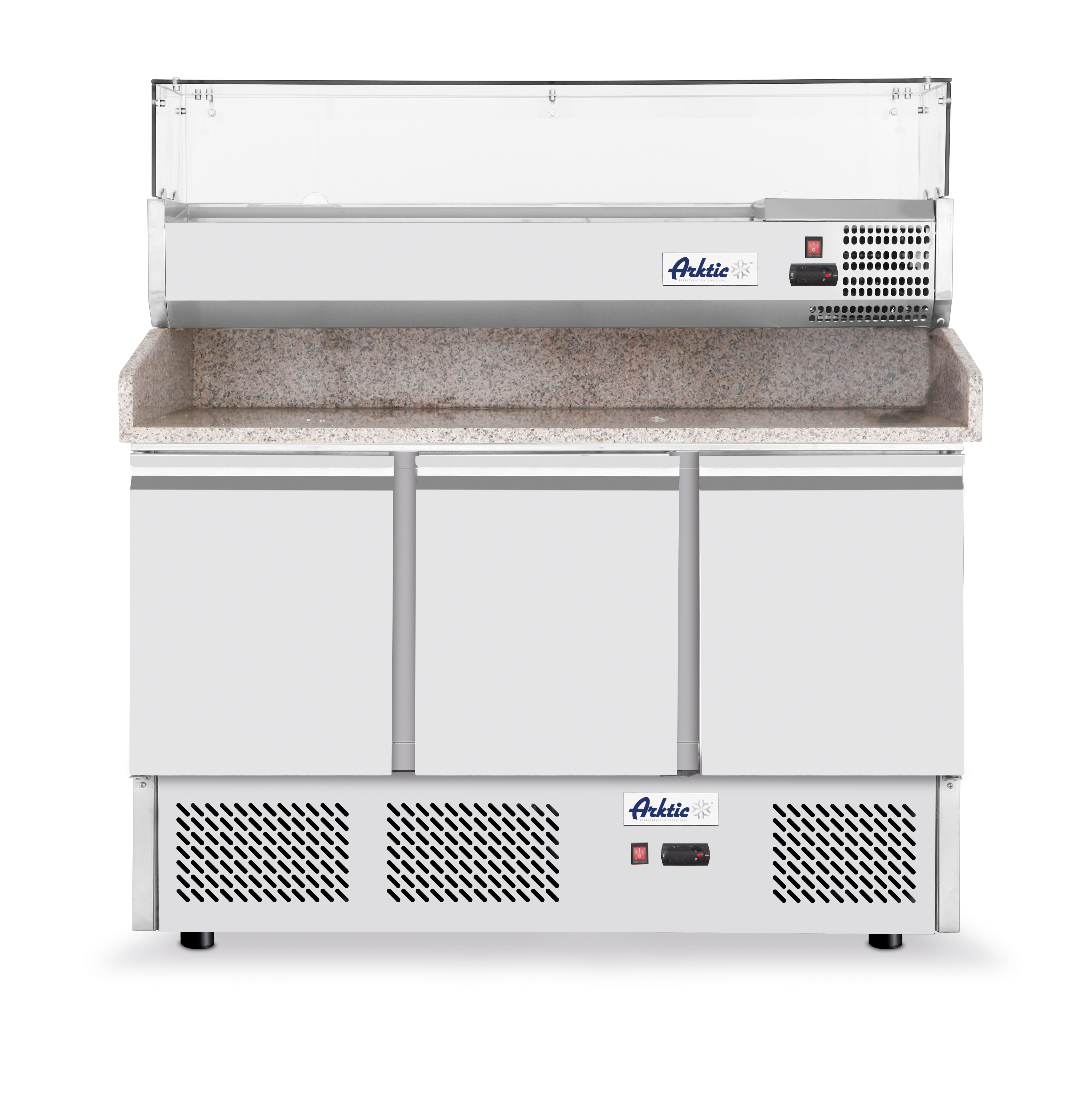 Pizzawerkbank met 3 deuren en koelvitrine 380+40L