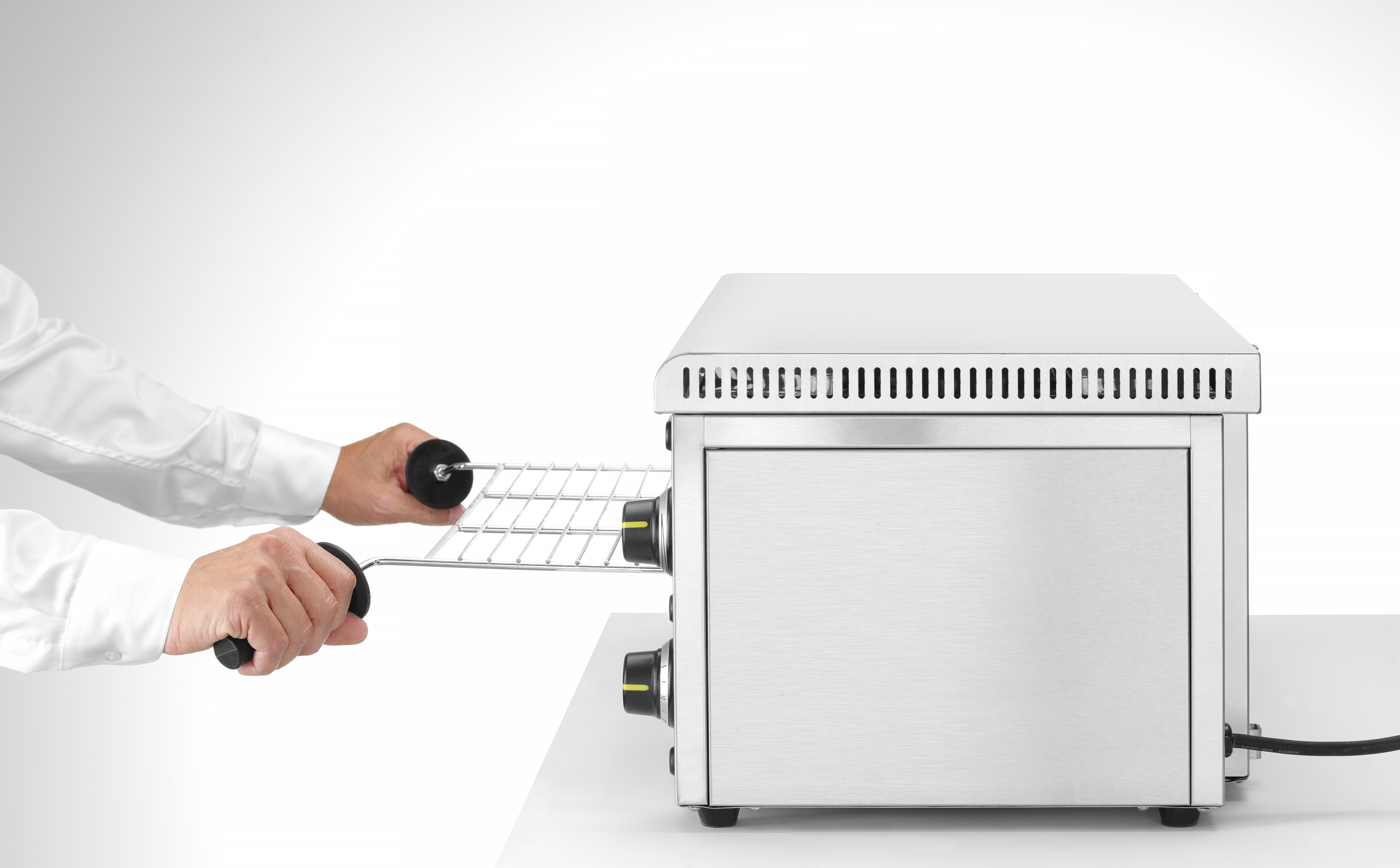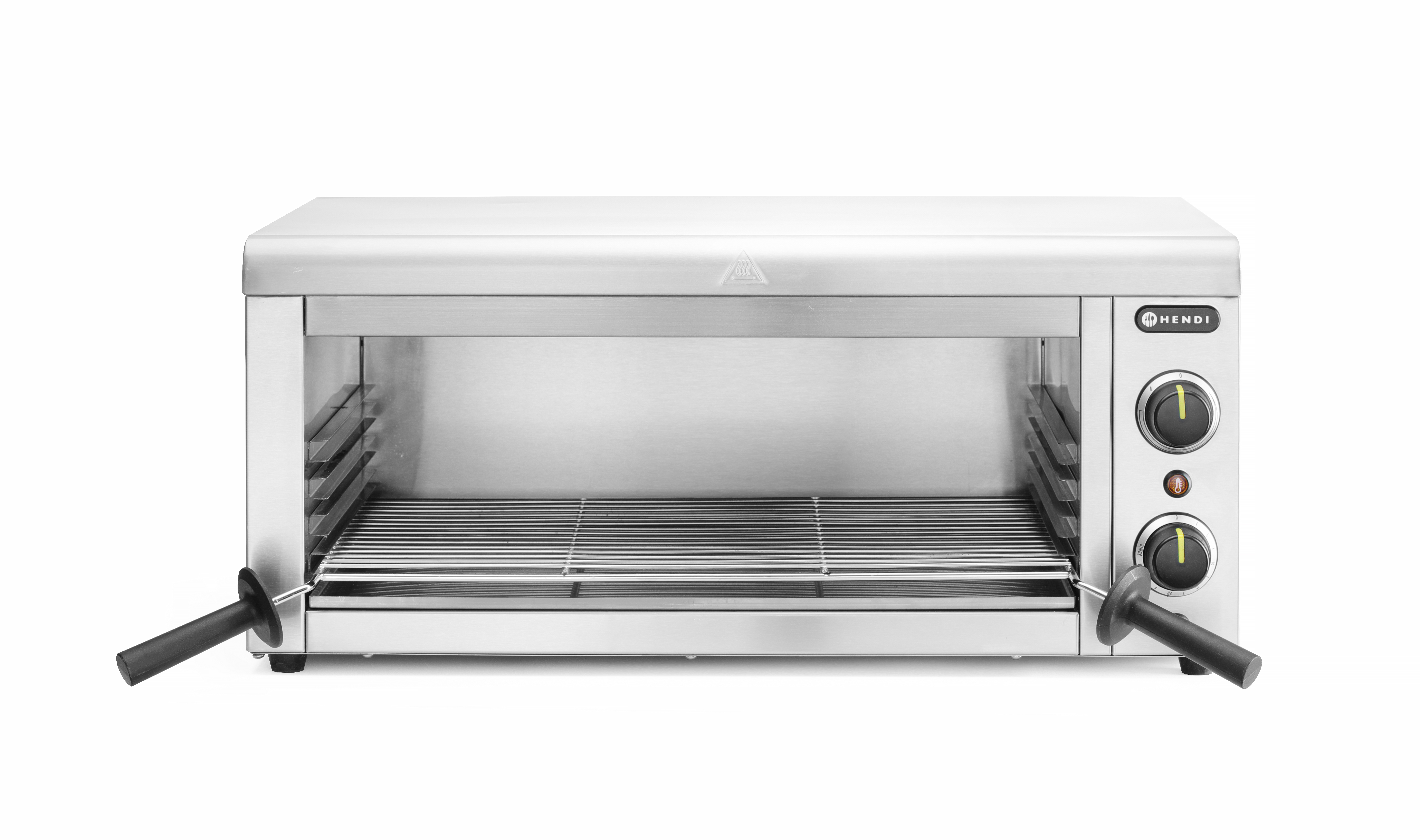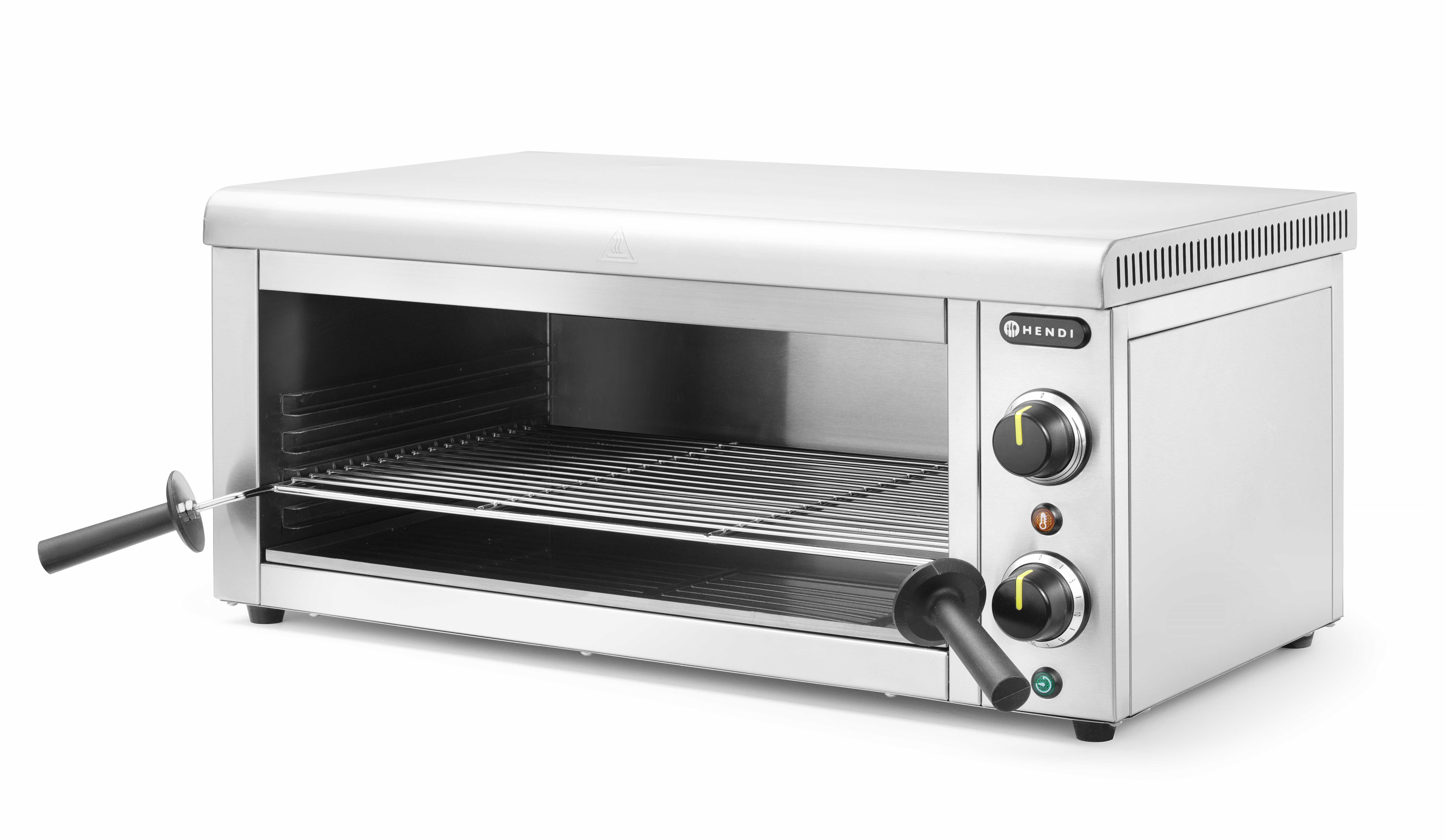 De HENDI Salamander 1/1 GN is ideaal voor snel en gelijkmatig verwarmen, grillen en roosteren. De hoogte van het rooster kan worden aangepast op 4 verschillende niveaus. De salamander wordt geleverd met een rooster en verwijderbare kruimellade voor eenvoudige reiniging.