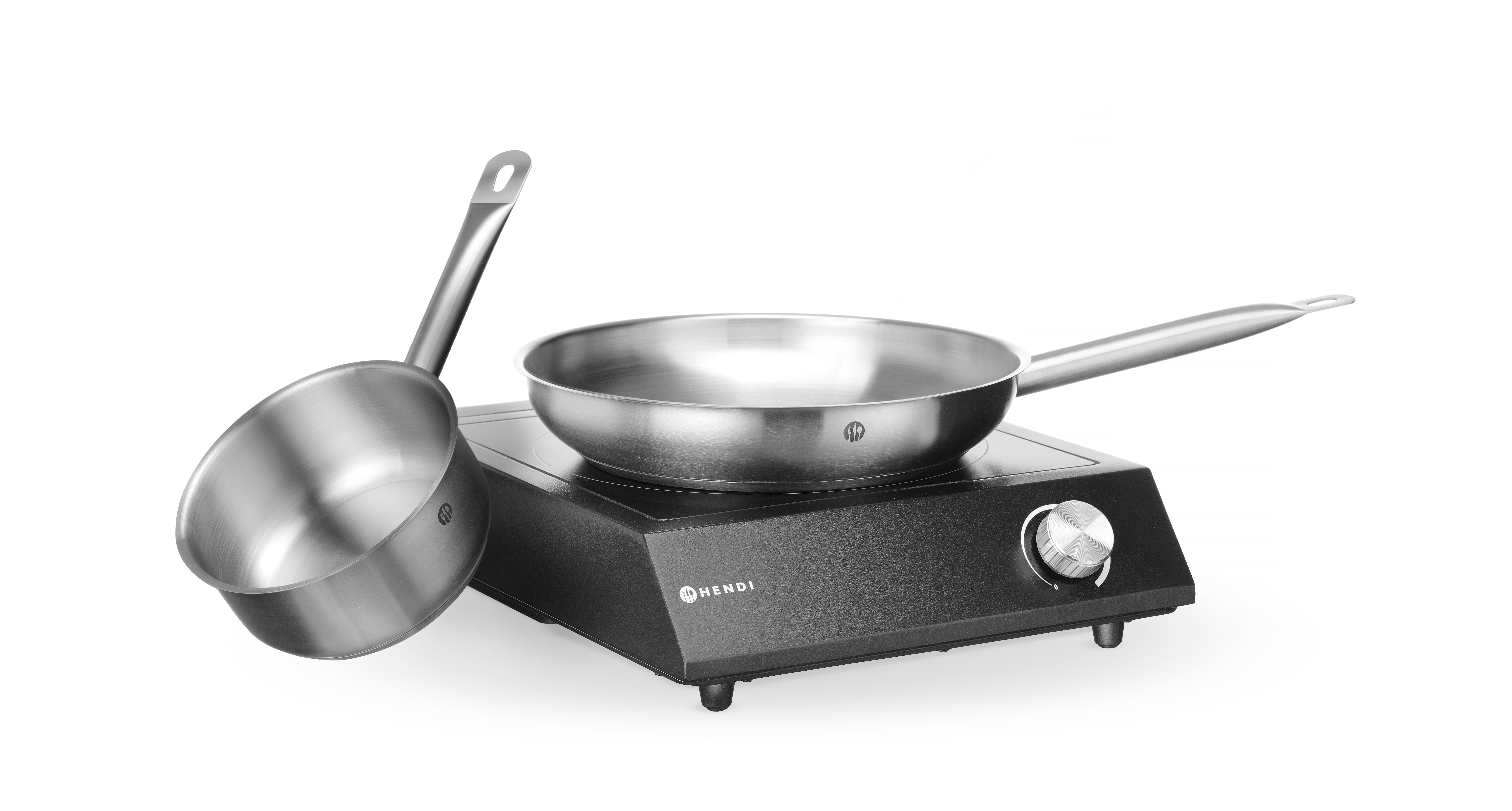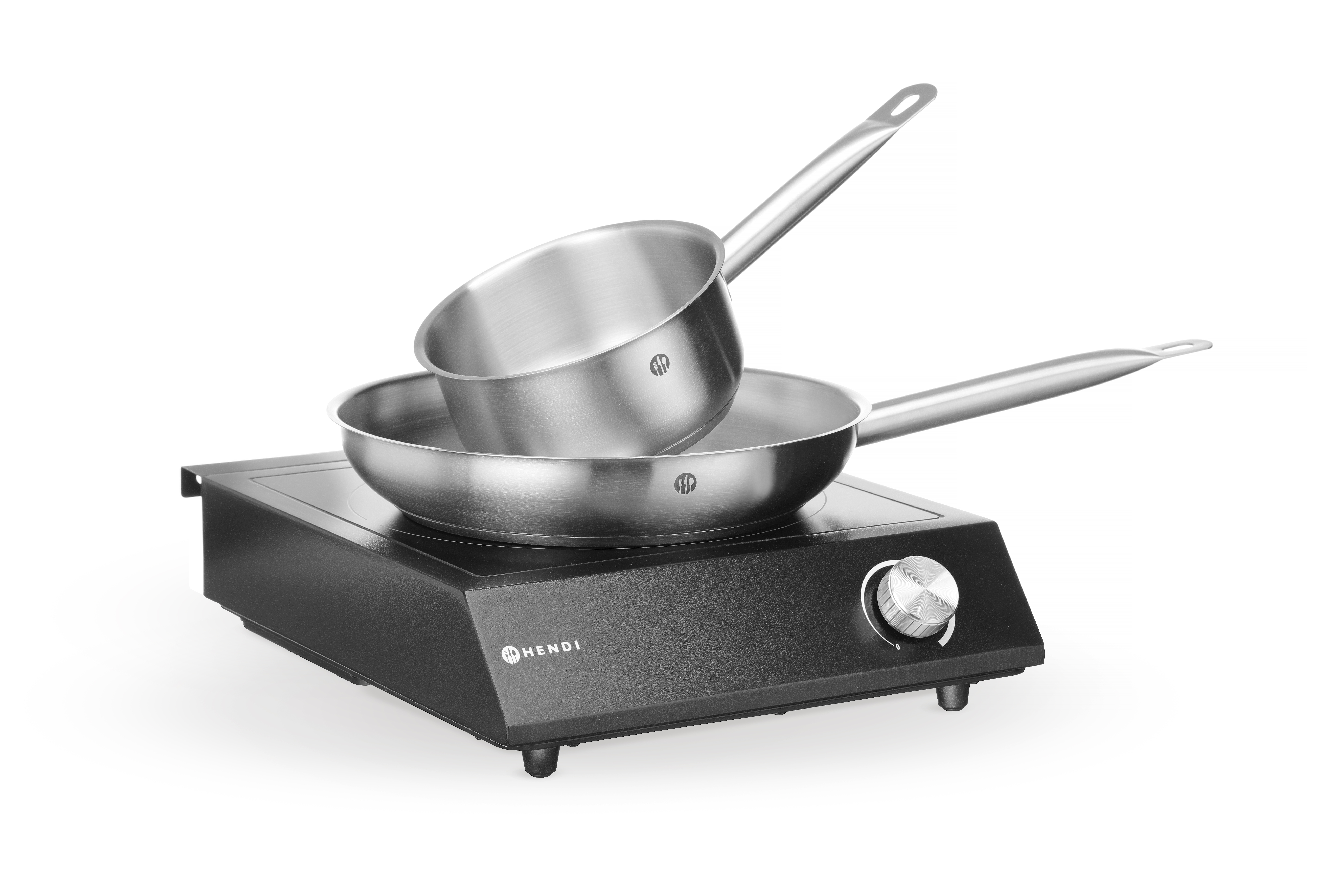 De HENDI-set: Inductie kookplaat 3500W + steelpan + koekenpan belooft uitstekende en snelle resultaten en is tegelijkertijd energiezuinig. Deze inductie kookplaat biedt kracht in een compact en strak ontwerp, omdat het kookoppervlak is gemaakt van glas en de behuizing is gemaakt van gepoedercoat staal, wat zorgt voor duurzaamheid en elegantie. De set bestaat uit een steelpan en een koekenpan die deze set de complete en handige startset voor elke keuken maken.