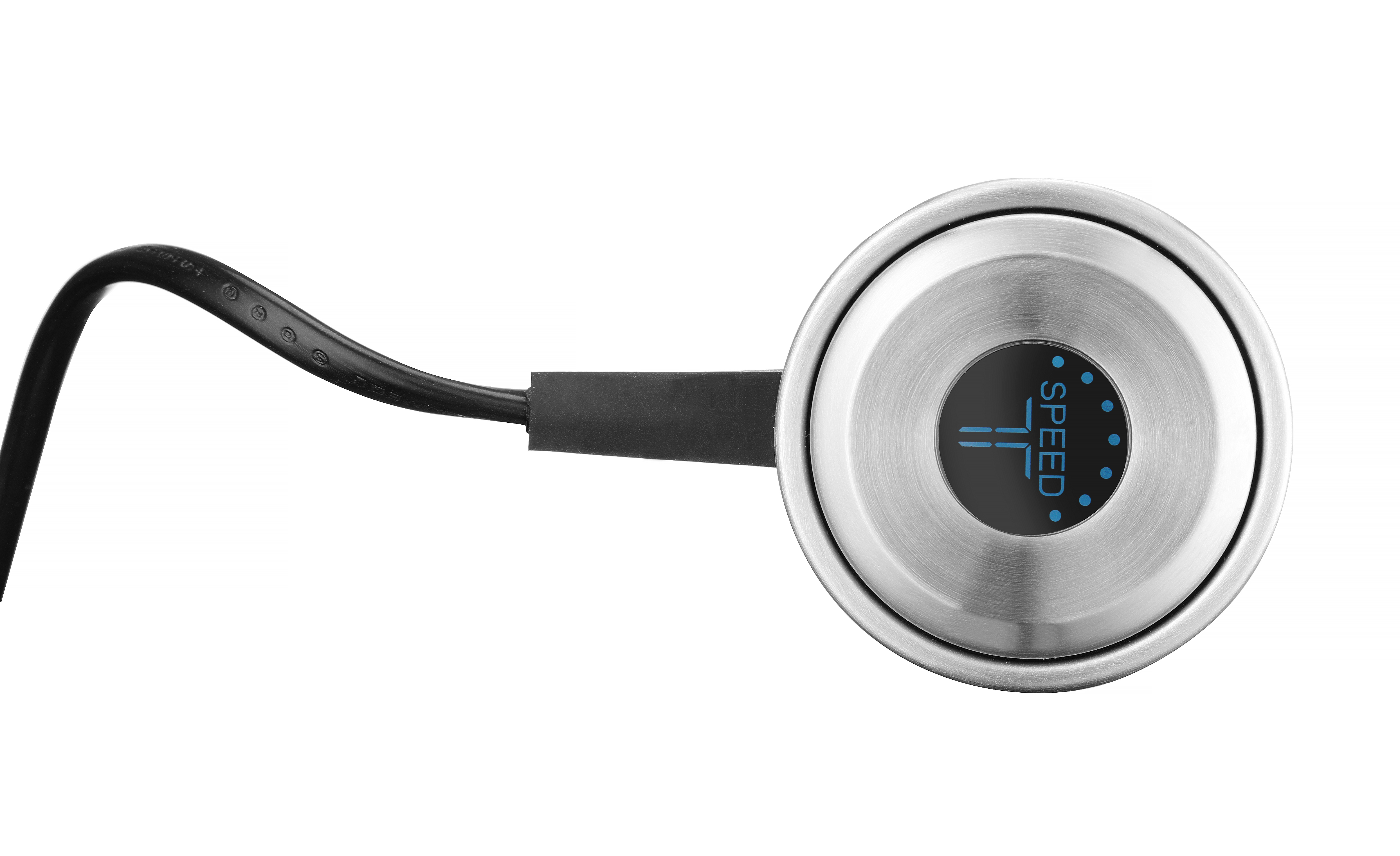 Vermogen geregeld met een draaiknop, LCD-display toont de snelheid in 7 stappen.