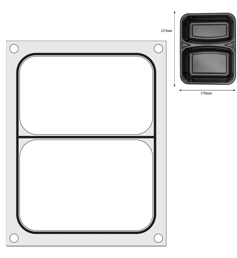 | Kenmerk | container 227x178 mm | 2x container 178x113 mm | Tweedelige colt container colt 227x178 mm | Driedelige container 227x178 mm | Twee-delige container 227x178 mm | soepcontainer ø165 mm | 2x soepcontainer ø115 mm | 2 containers (1x 178x113 mm, 1x ø115 mm) | container 187x137 mm |