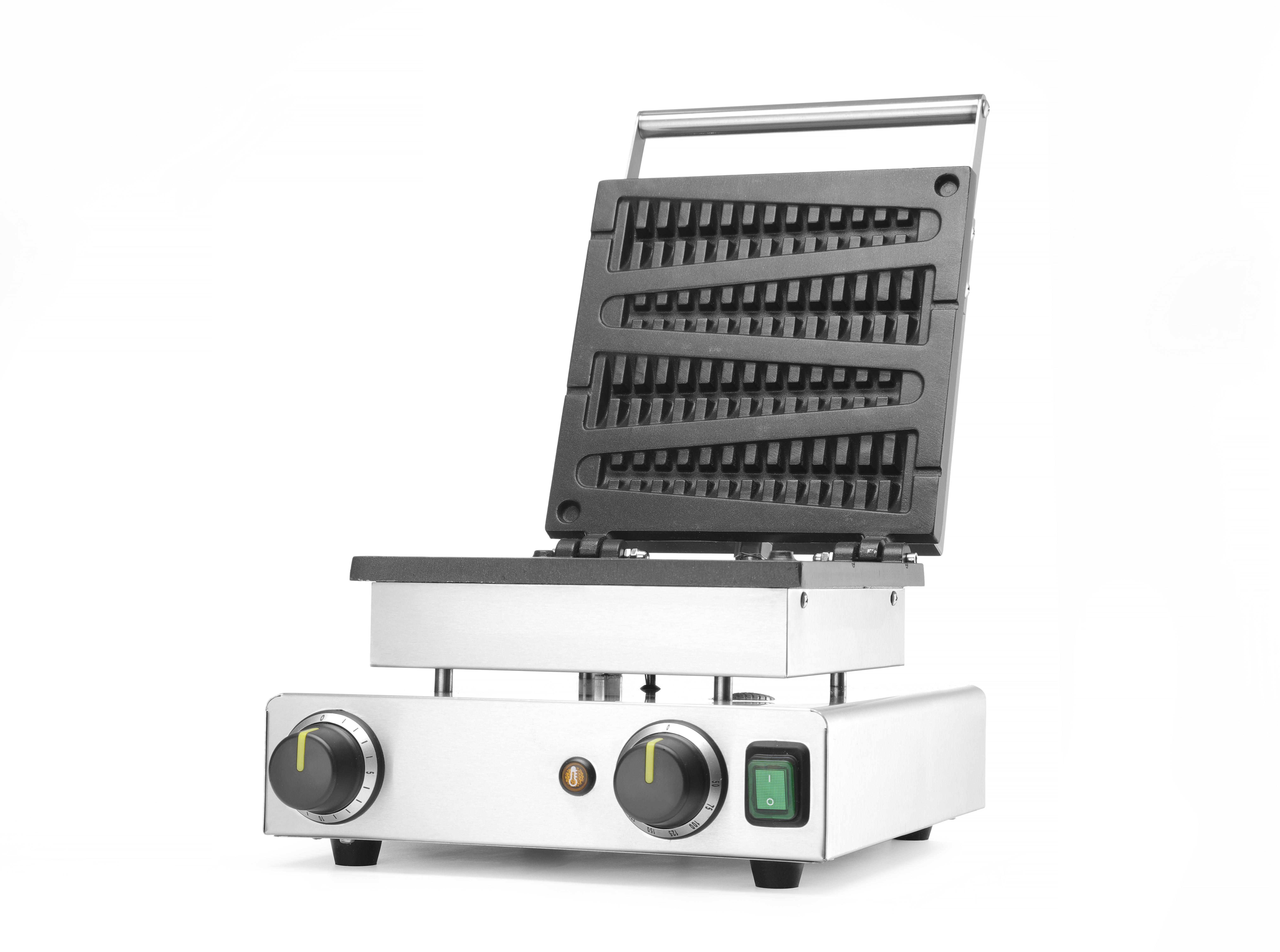 Het is mogelijk om 4 lolly-wafels tegelijk te bakken, elk 255 mm lang (zonder stokje) en in de vorm van een langwerpige kegel.