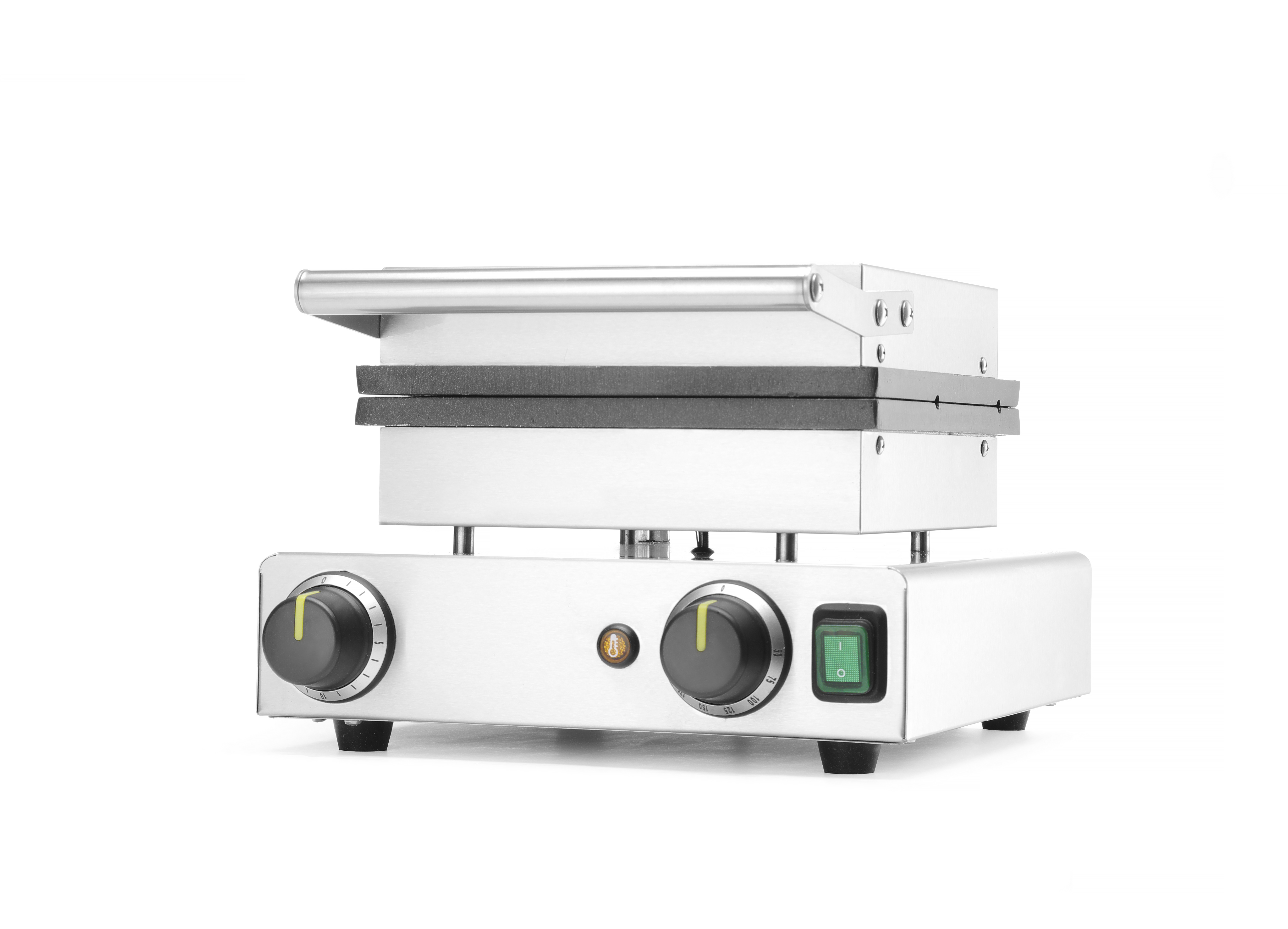 Wafelijzers van gegoten aluminium en voorzien van een duurzame Teflon® antiaanbaklaag.